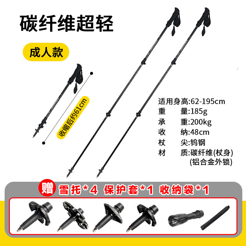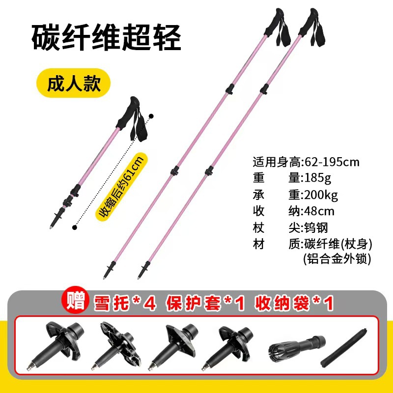 공장 직접 공급 탄소 섬유 초경량 텔레스코픽 트레킹 폴, 경량 휴대용 야외 등산 및 하이킹 미끄럼 방지 스틱