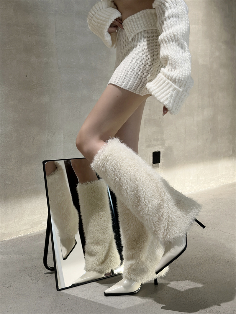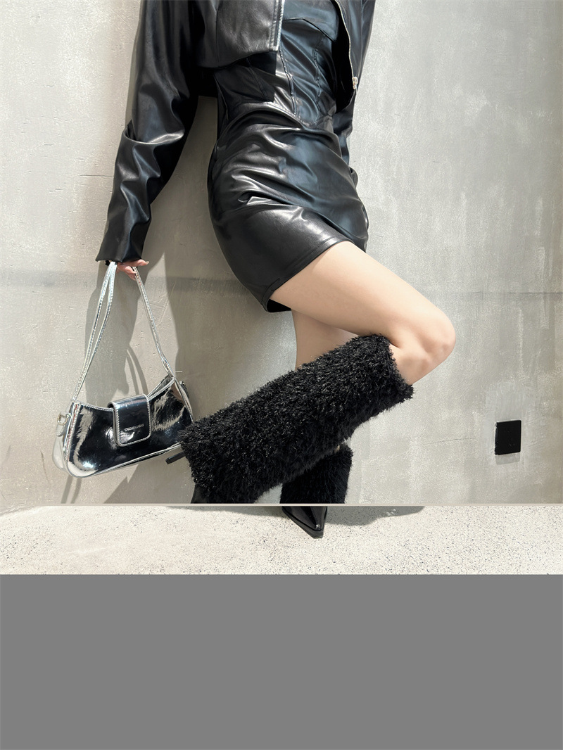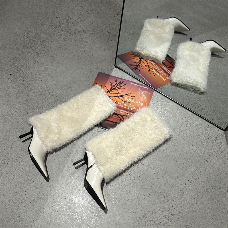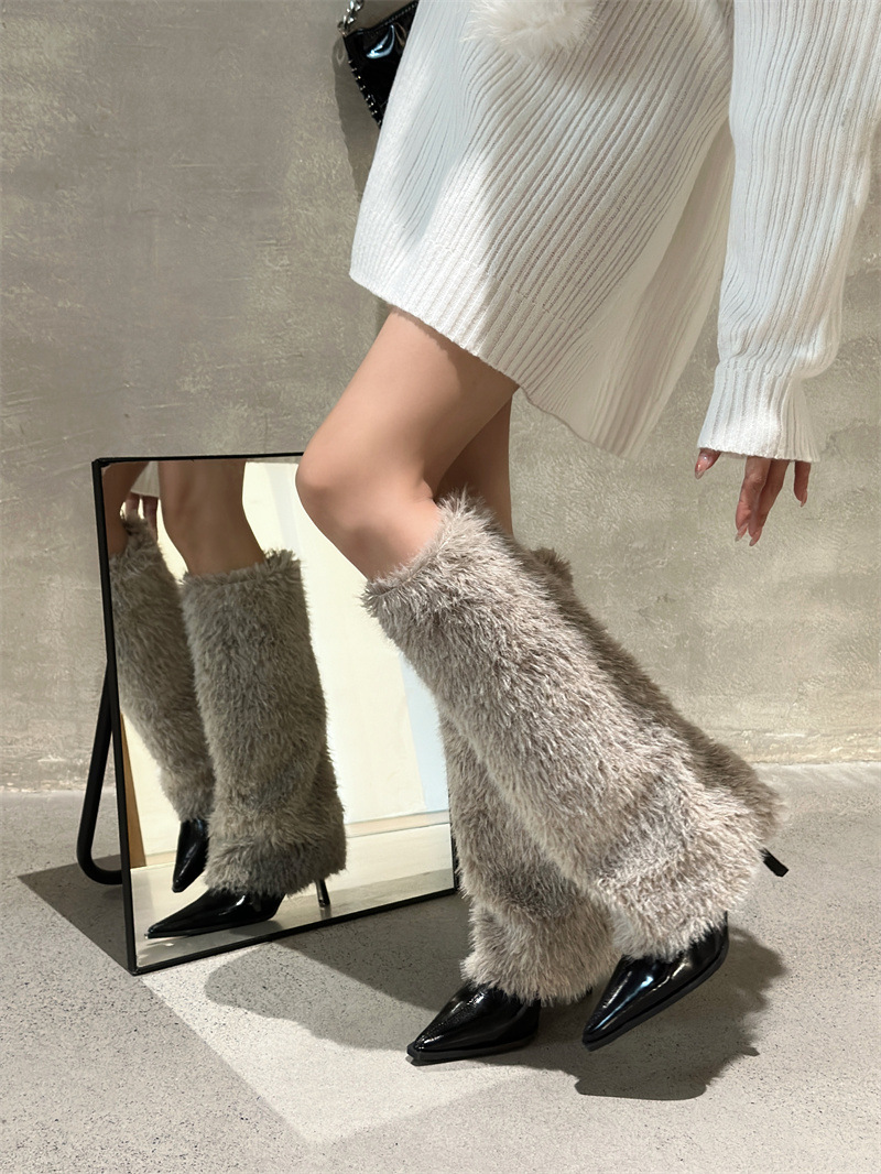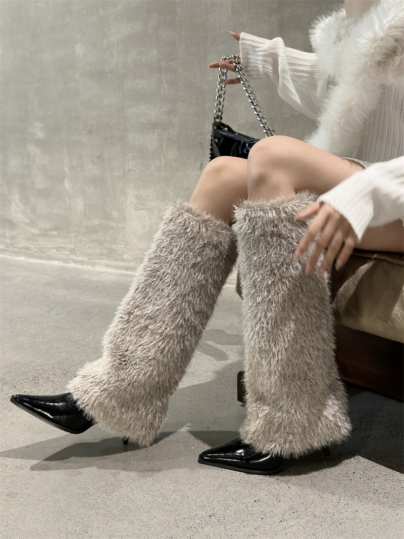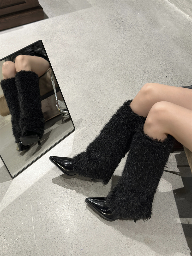 2024 가을과 겨울 새로운 포인팅 팬츠 부츠 높은 배럴 여성용 부츠 스노우 부츠 틈새 마오 마오 따뜻한 패션 하이힐 부츠