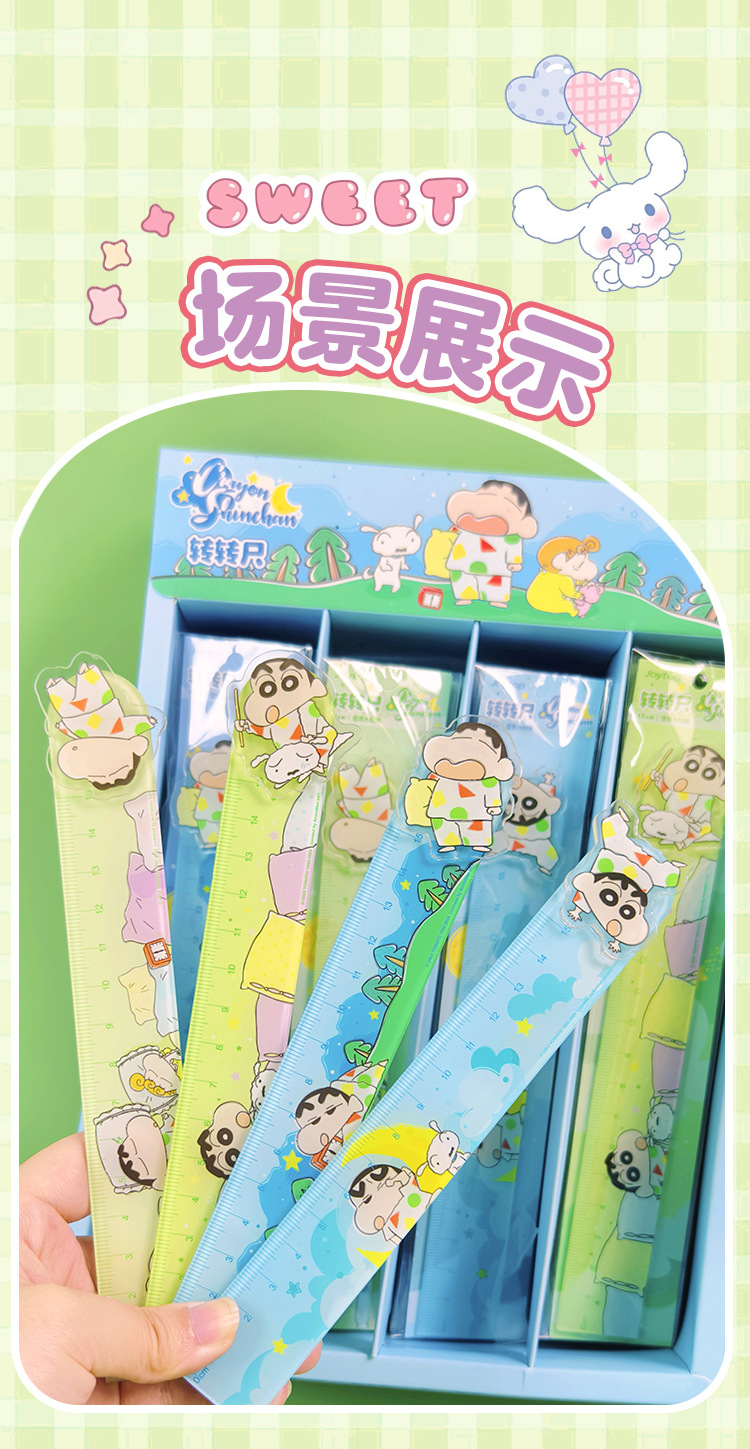 Yuemu Crayon Xiao Xin Zhuan Ruler 학생 크리에이티브 Zhuan Ruler 15cm 초등학생을위한 다기능 통치자스토어 가기