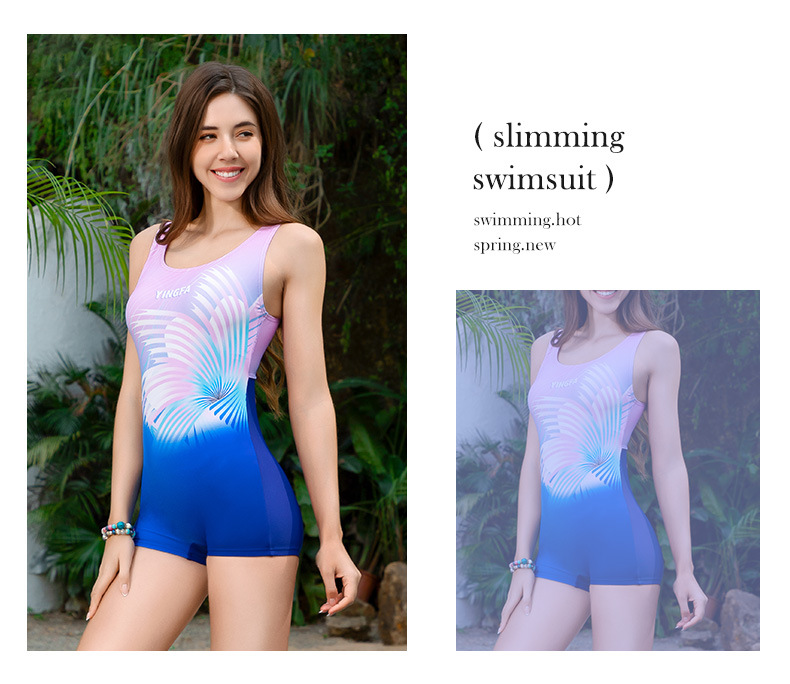 Yingfa 수영복 여자 겨울 새로운 온천 수영 세트 뒤덮인 배꼽 슬리밍 원피스 복서 프로 스포츠 수영복스토어 가기