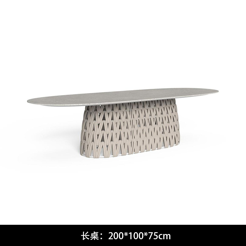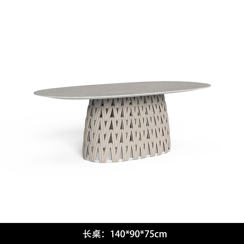 야외 로프 테이블과 의자 조합 록 플레이트 다이닝 테이블 발코니 레저 마당 야외 조명 럭셔리 인터넷 유명 인사 3 인조 가구스토어 가기