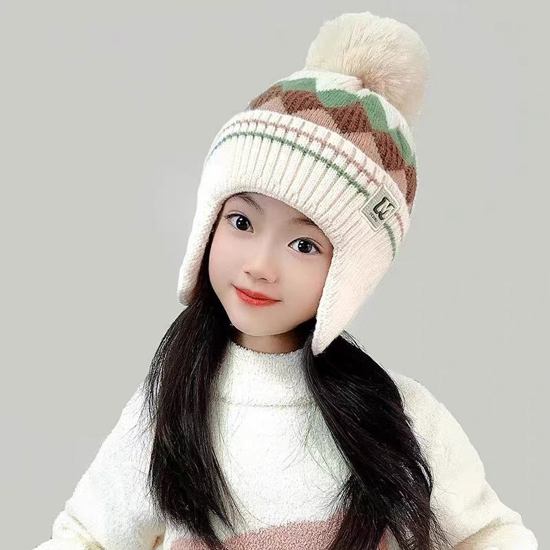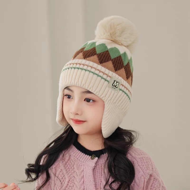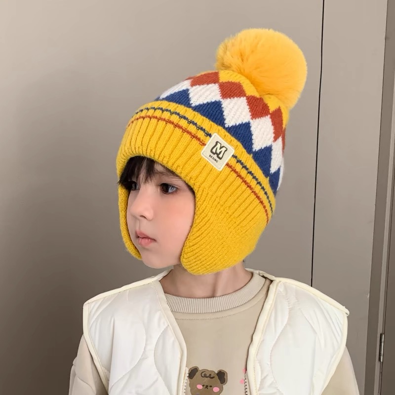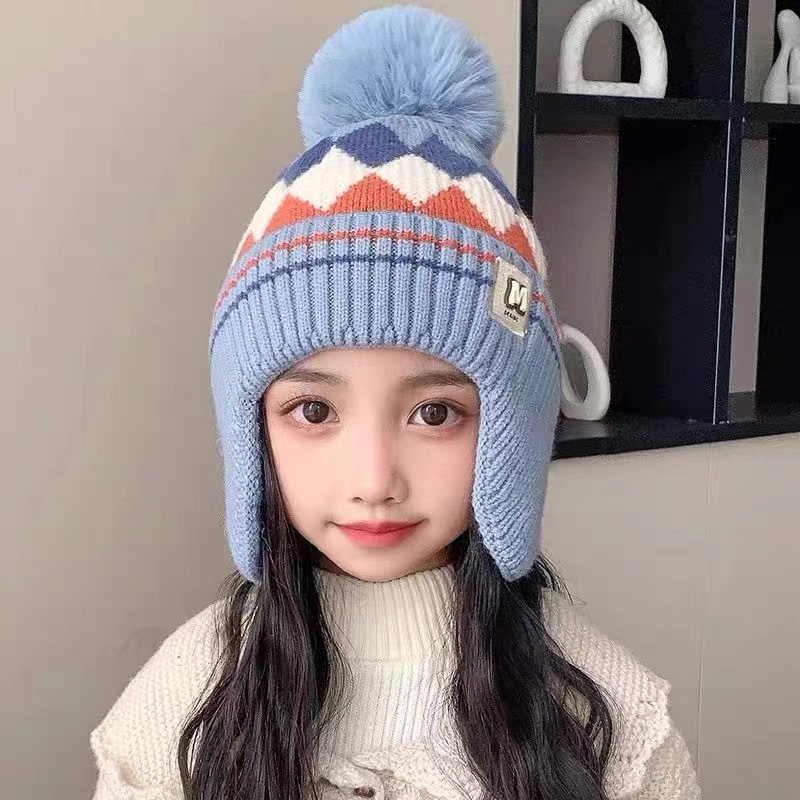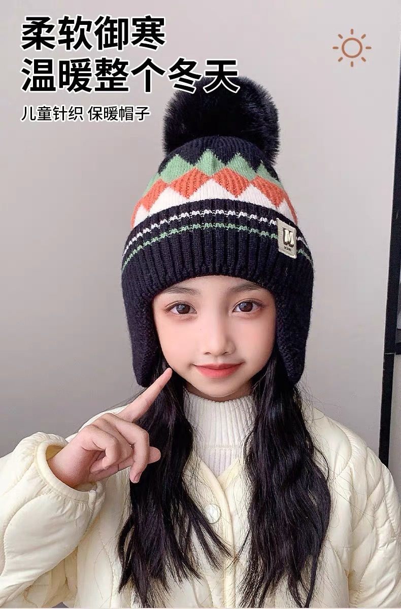 어린이 모자 겨울 새로운 스타일 두꺼운 따뜻한 니트 모자 소년과 소녀를위한 방풍 및 방한 귀 보호 모자 아기 모직 모자스토어 가기