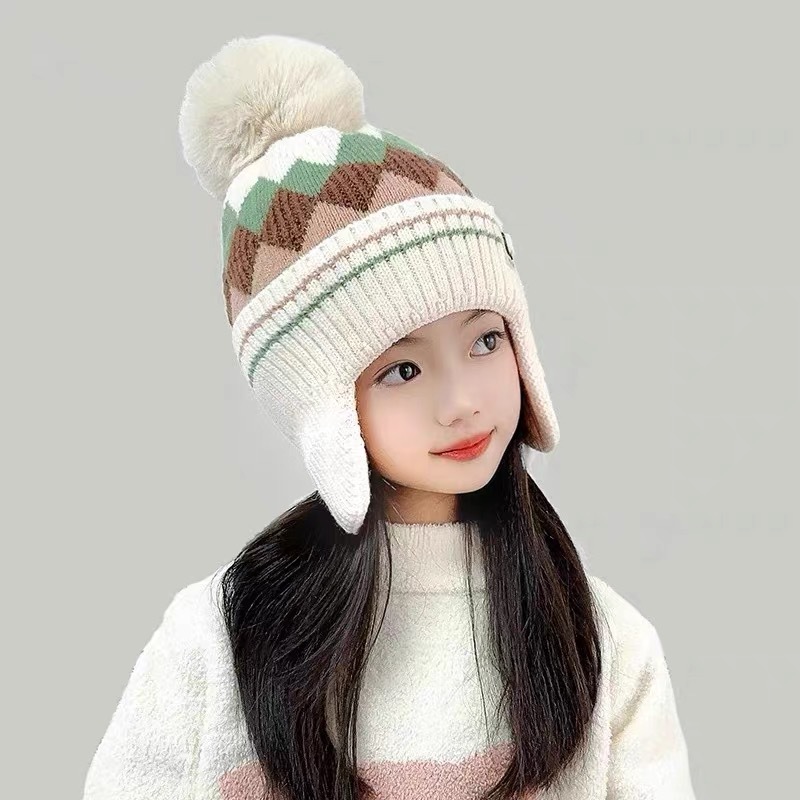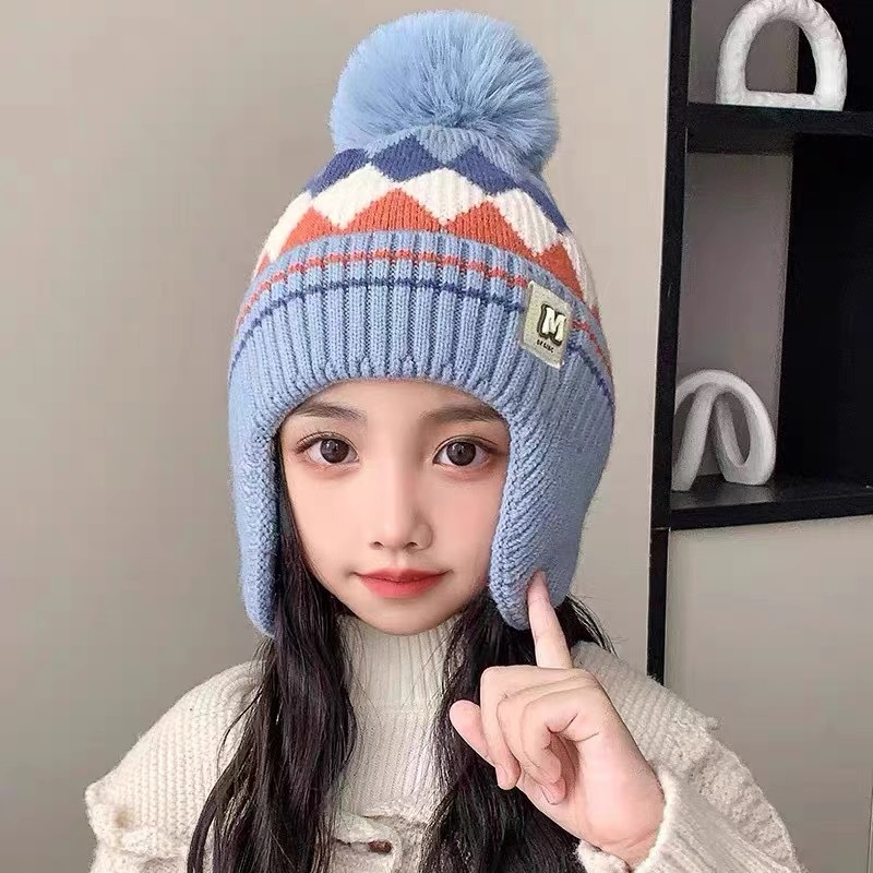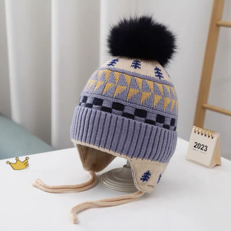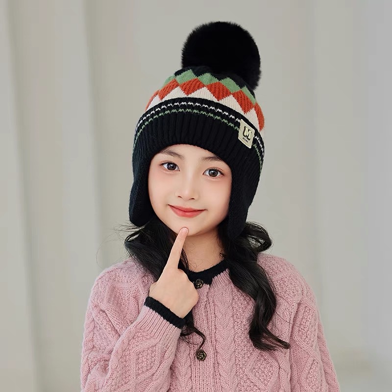 어린이 모자 겨울 새로운 스타일 두꺼운 따뜻한 니트 모자 소년과 소녀를위한 방풍 및 방한 귀 보호 모자 아기 모직 모자