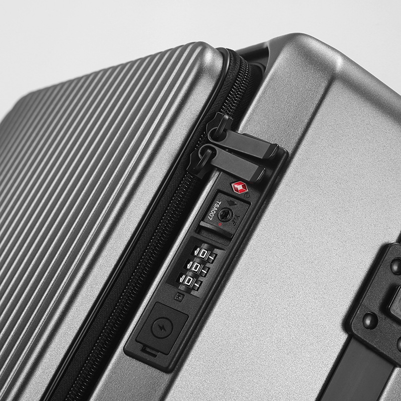 2024 새로운 수하물 알루미늄 프레임 트롤리 케이스 전면 USB 충전 탑승 케이스 20 인치 개인 여행 비즈니스 케이스