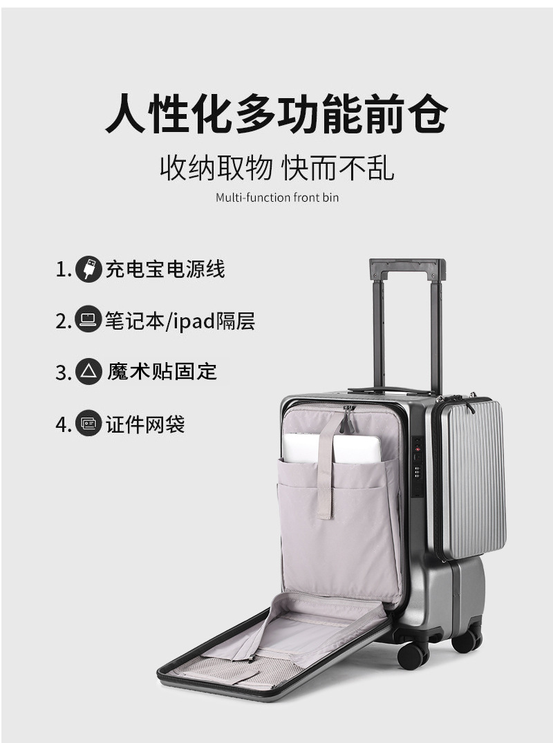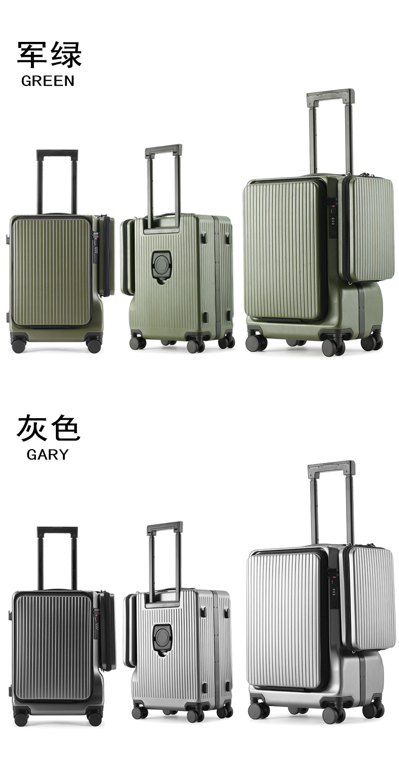 2024 새로운 수하물 알루미늄 프레임 트롤리 케이스 전면 USB 충전 탑승 케이스 20 인치 개인 여행 비즈니스 케이스스토어 가기
