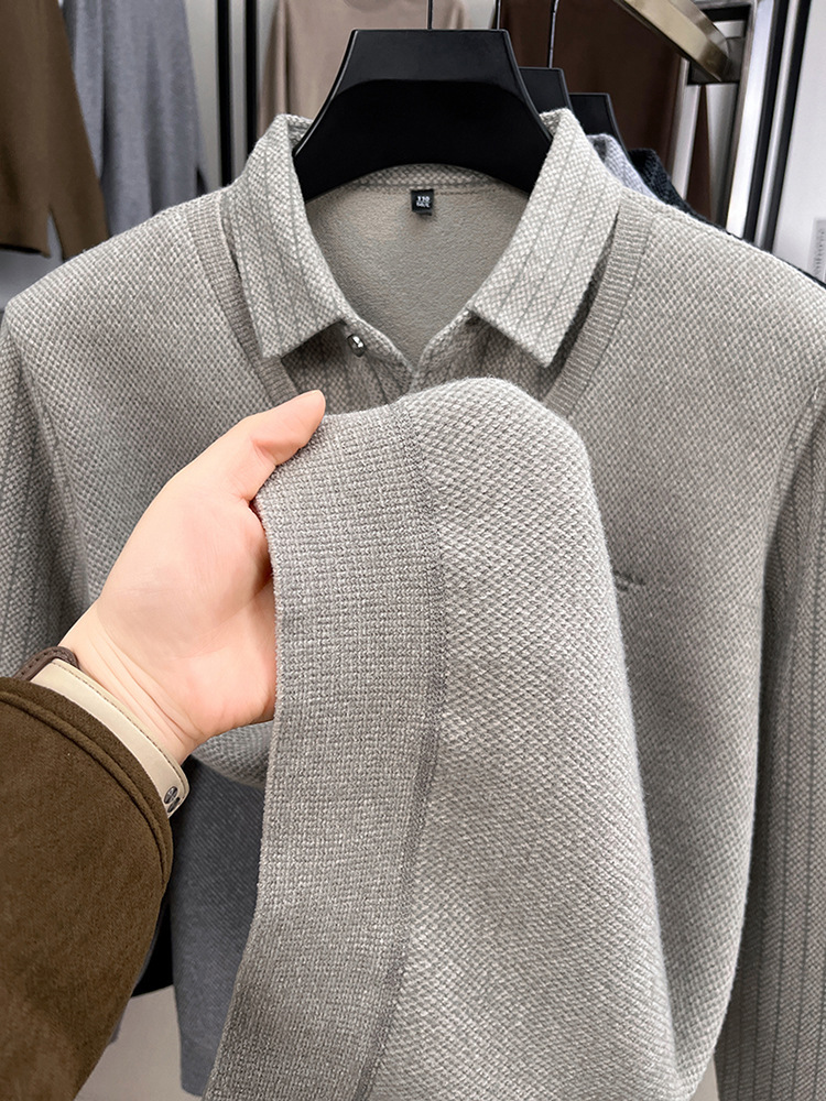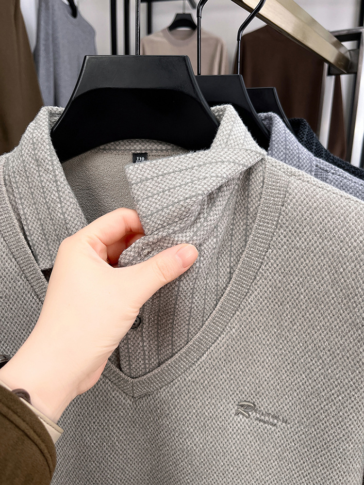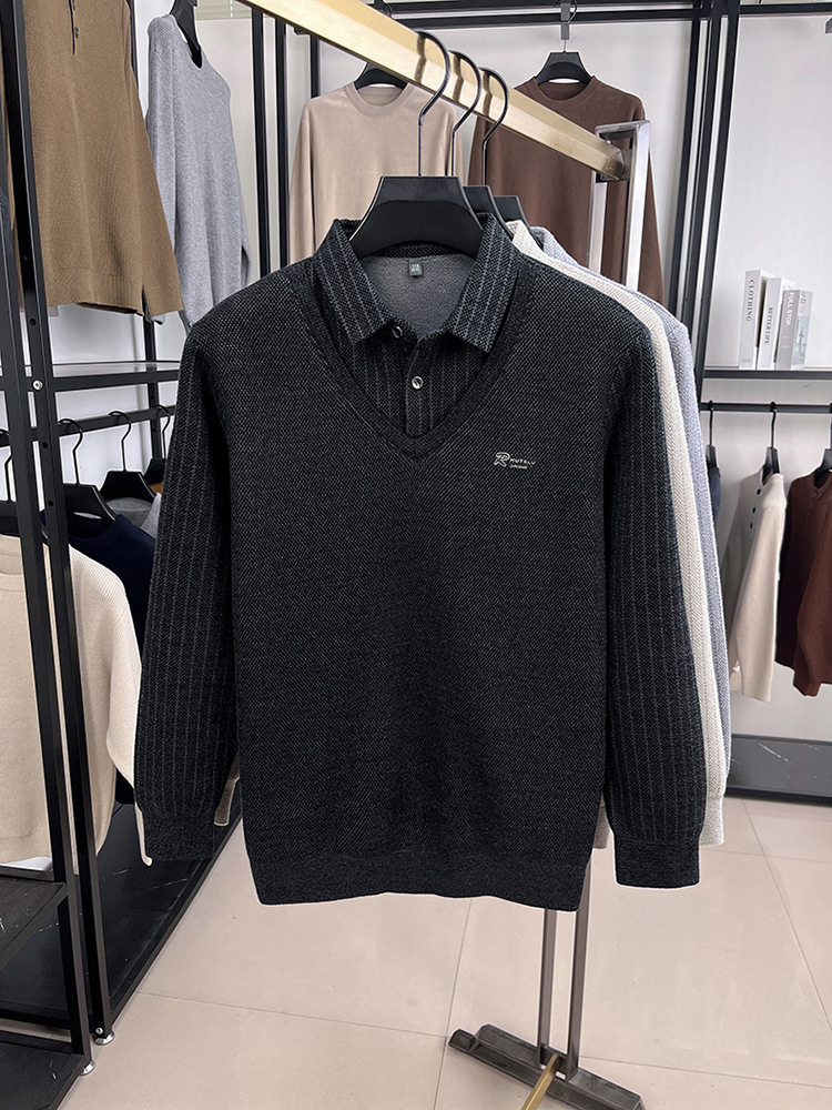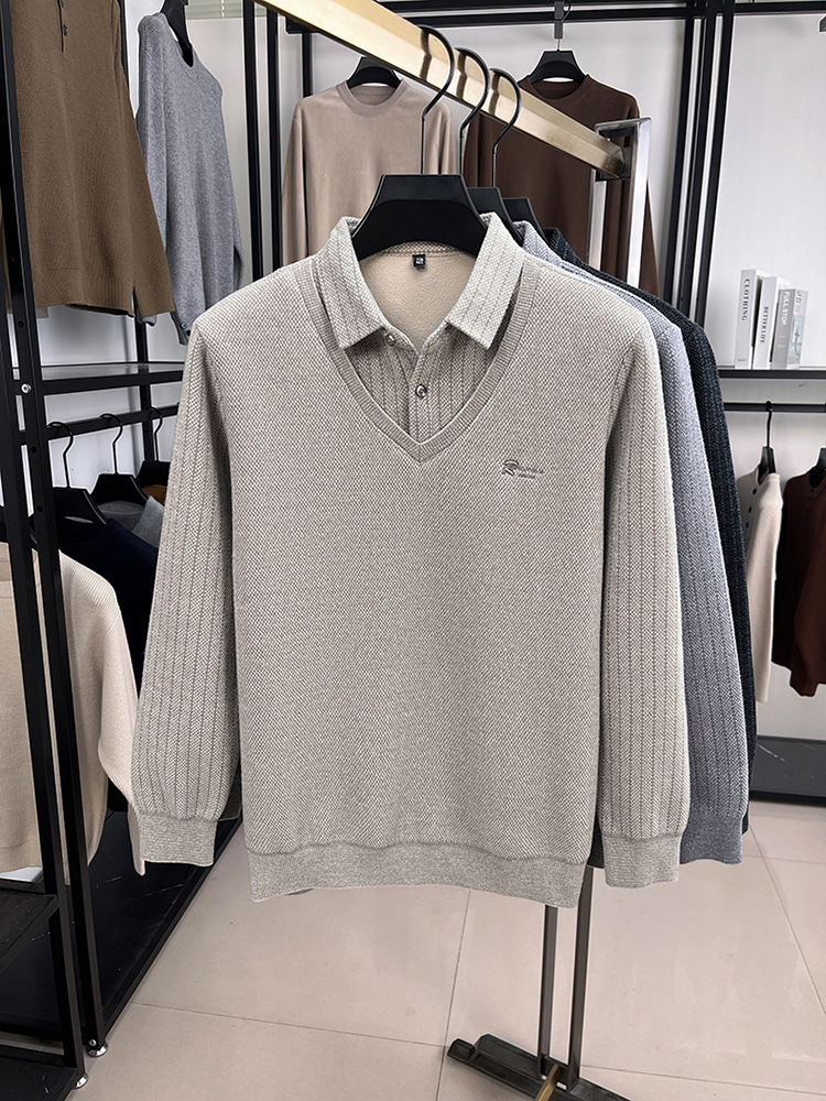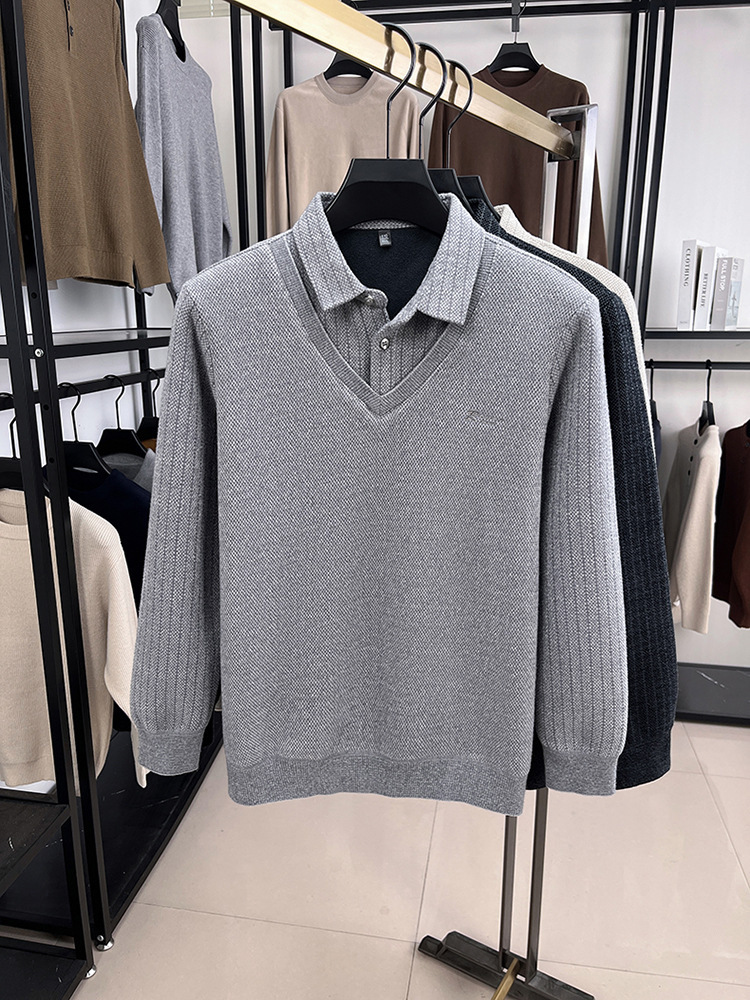 겨울 기모 두꺼운 스웨터 남자 가짜 투피스 옷깃 따뜻한 중년 아빠 니트 셔츠베이스 폴로 셔츠스토어 가기