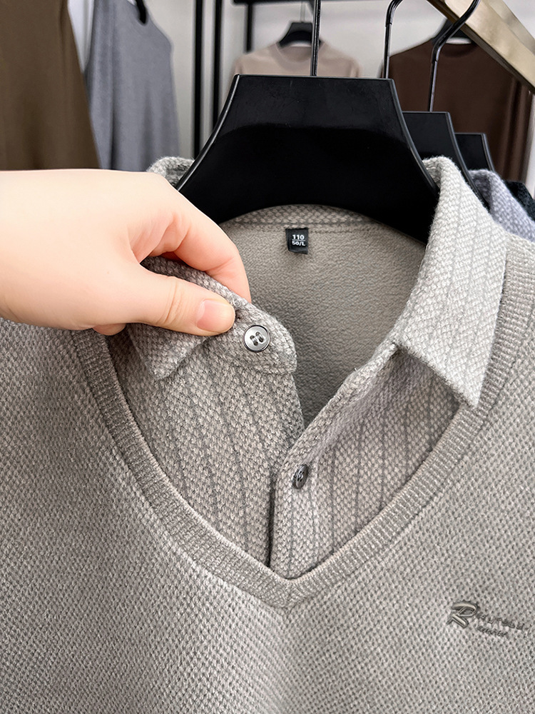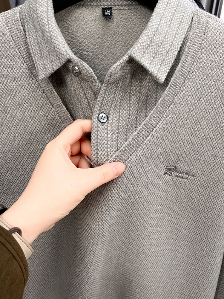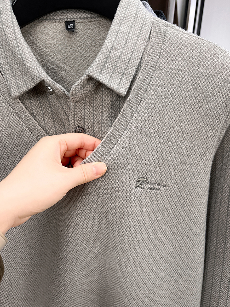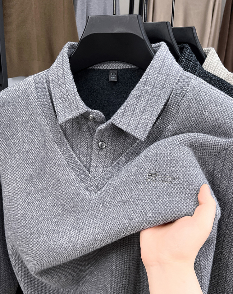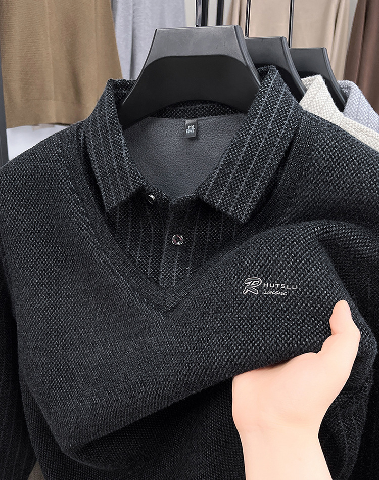 겨울 기모 두꺼운 스웨터 남자 가짜 투피스 옷깃 따뜻한 중년 아빠 니트 셔츠베이스 폴로 셔츠