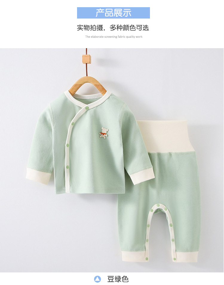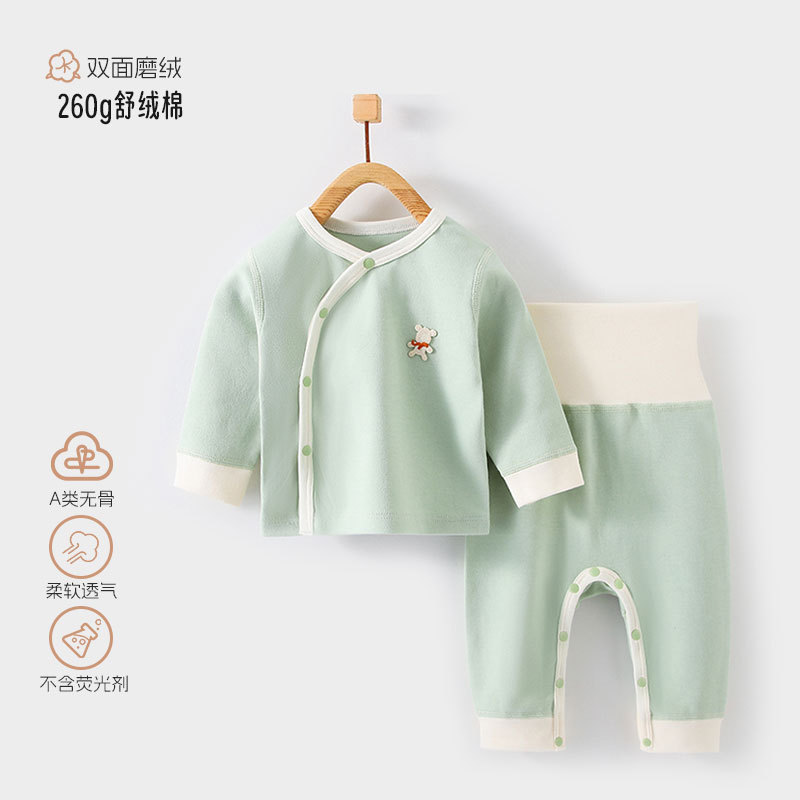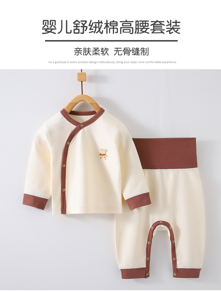 아기 파자마 속옷 봄과 가을 셔드 벨벳 높은 허리 배꼽 보호 신생아 분할 세트 아기 가을 옷 가을 바지 기본 옷