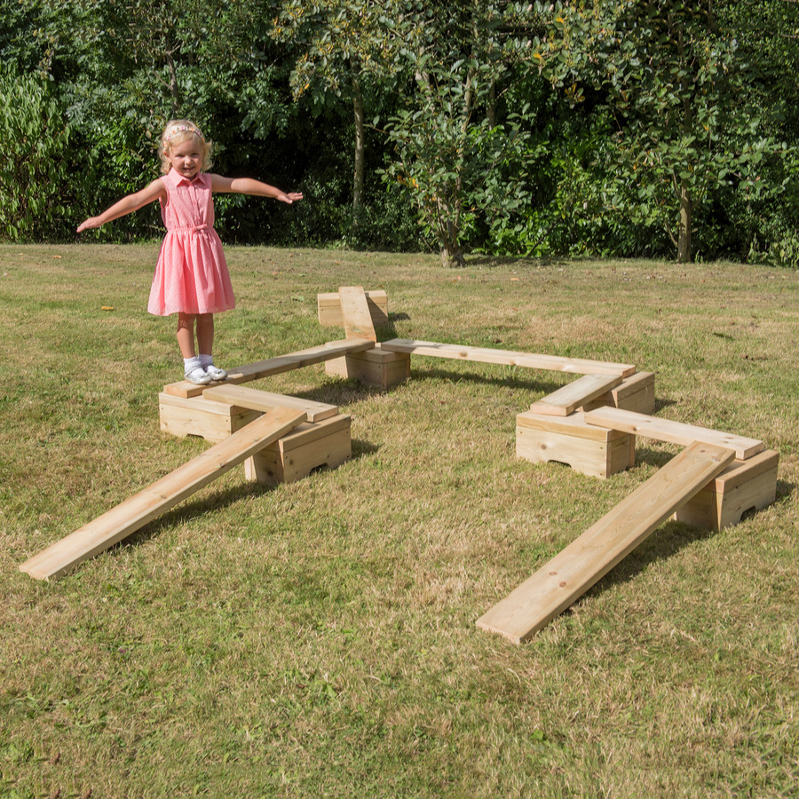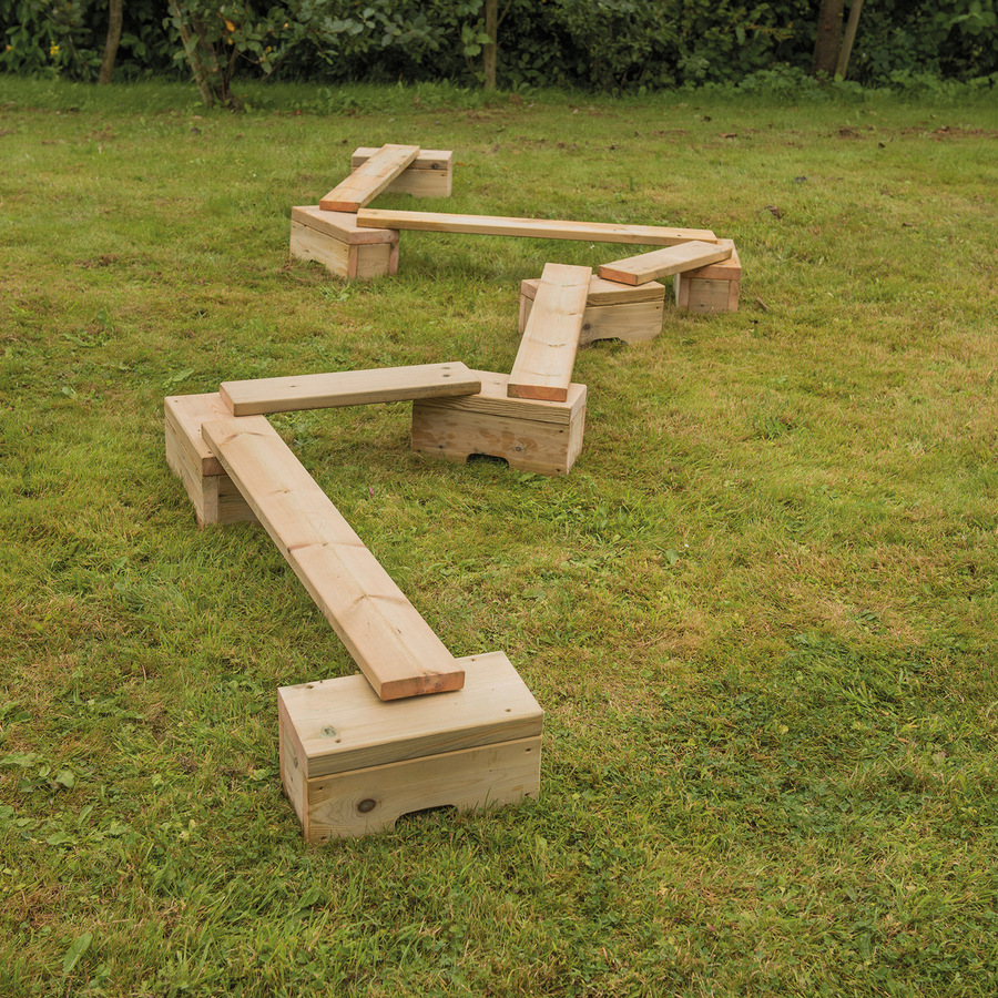 야외 목조 미니 모험 트레일 유치원 부식 방지 목재 감각 통합 강 건너는 돌스토어 가기