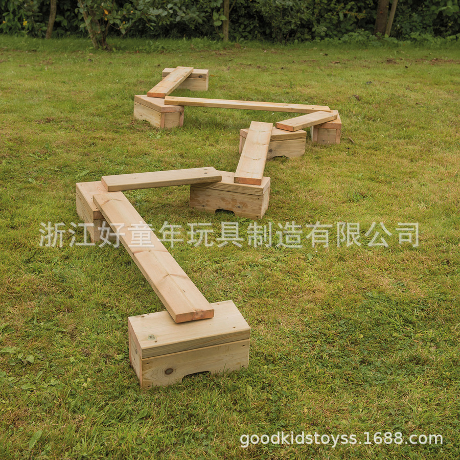 야외 목조 미니 모험 트레일 유치원 부식 방지 목재 감각 통합 강 건너는 돌