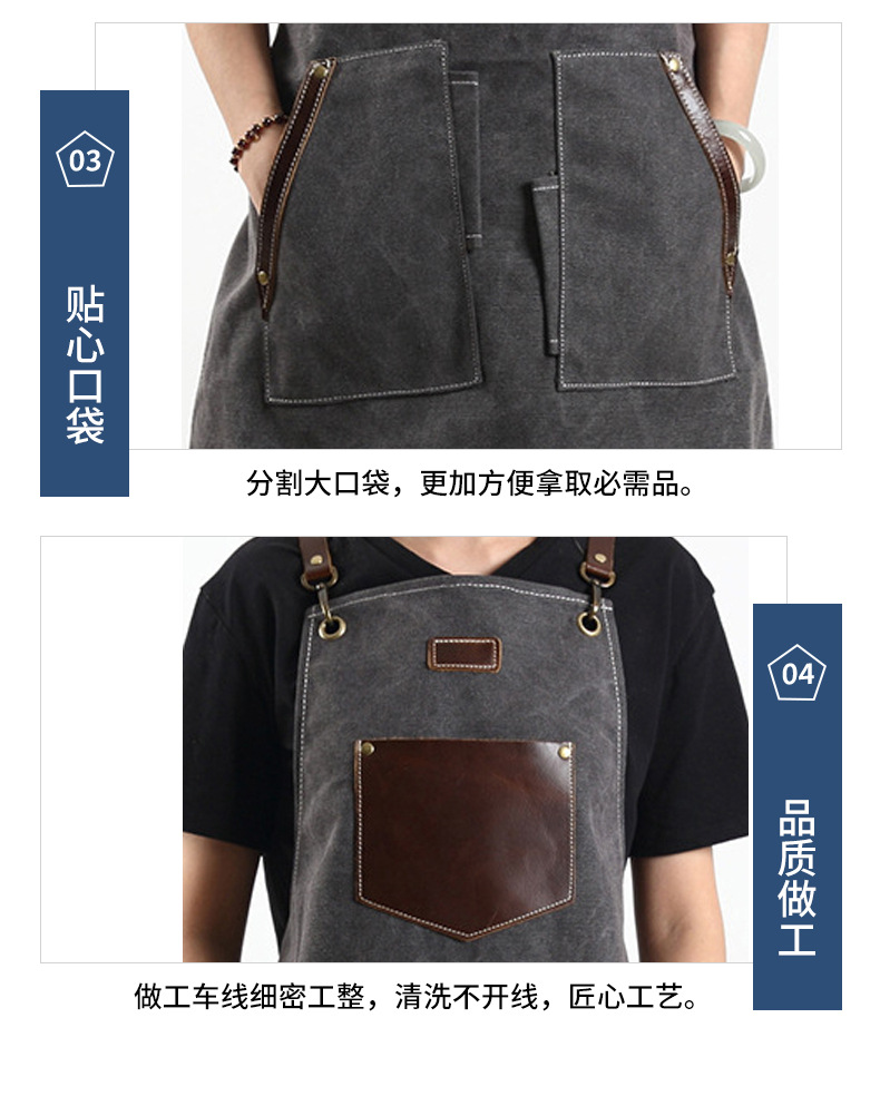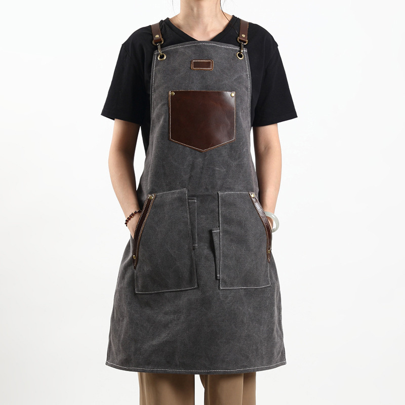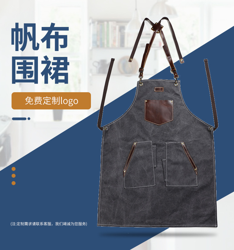아마존 유럽과 미국 두꺼운 캔버스 앞치마 커피 숍 밀크 티 샵 스튜디오 빈티지 캔버스 앞치마 인쇄 가능한 로고