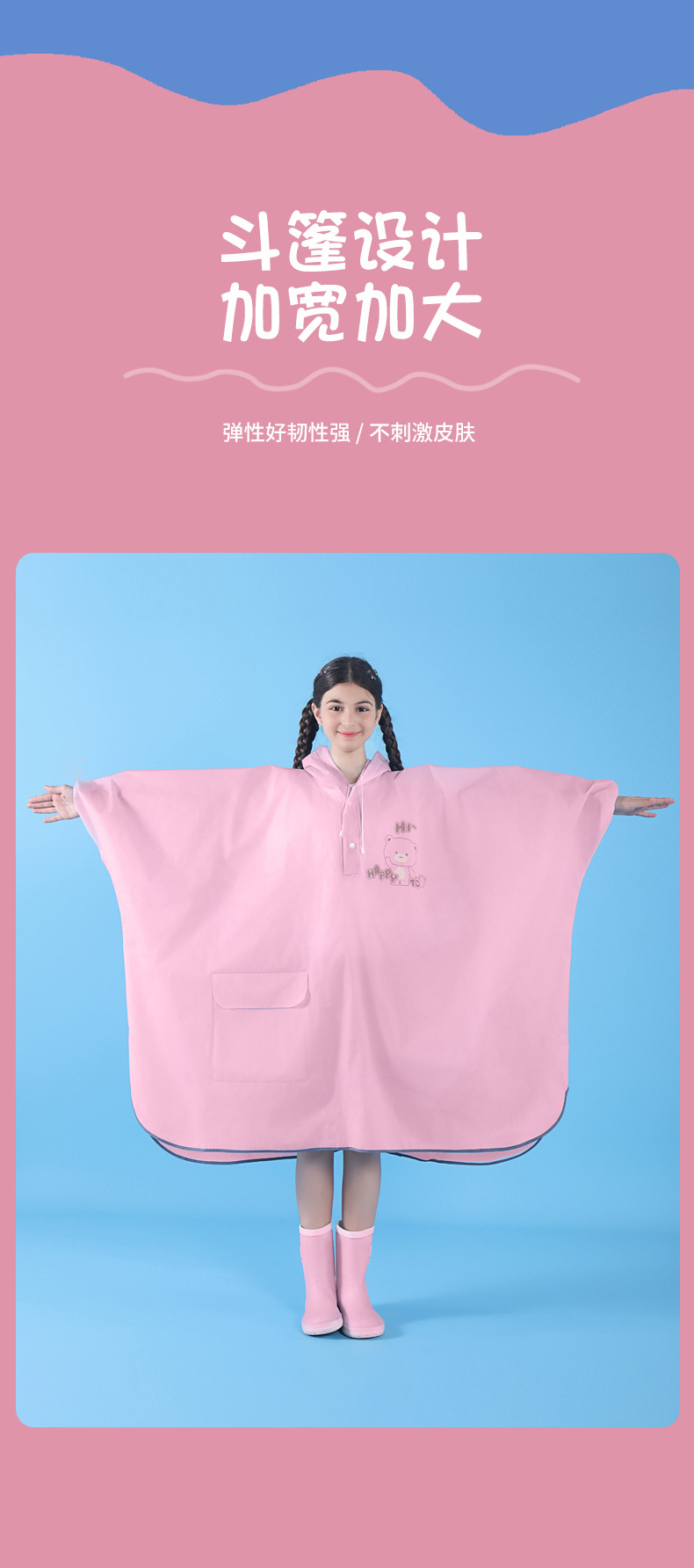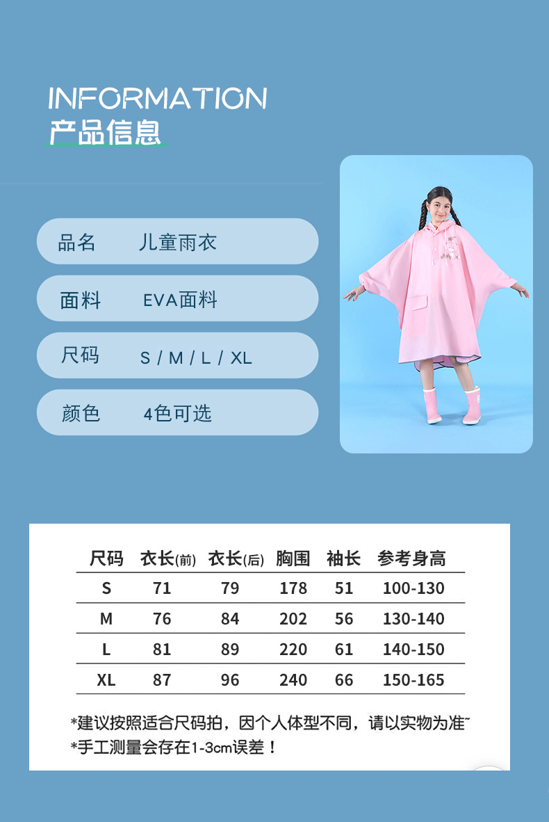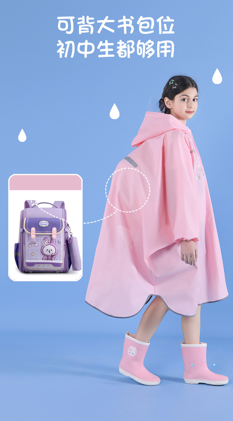 공장 공급 대형 어린이 케이프 비옷 휴대용 야외 학교 폭풍우 EVA 배낭 망토 비옷