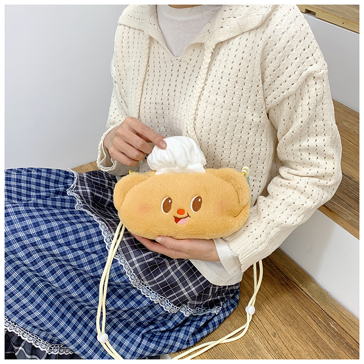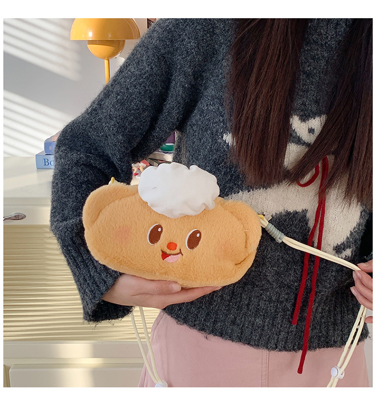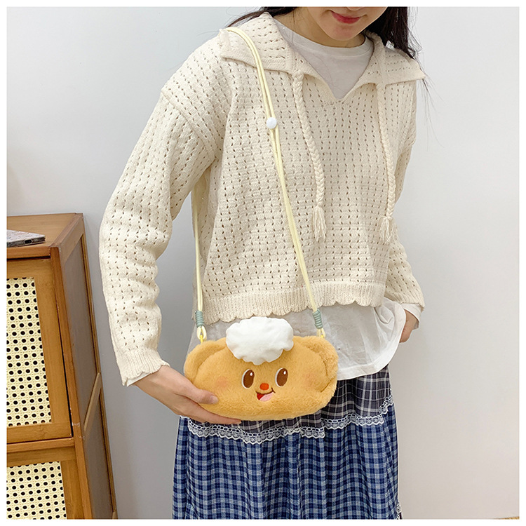버터 베어 봉제 크로스 백 2024 새로운 코어 여성의 대용량 저장 귀여운 창조적 인 어깨 가방