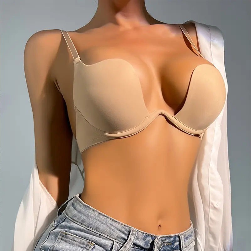 보이지 않는 백리스 속옷 딥 V 섹시 푸시 업 안티 처지 U-백 웨딩 원피스 브라 원활한 목 브래지어스토어 가기