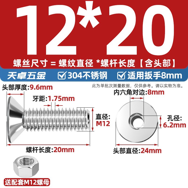 304 스테인레스 스틸 중공 플랫 카운터 침몰 헤드 육각 소켓 중공 스레딩 스크류 마스크 기계 램프 너트 세트
