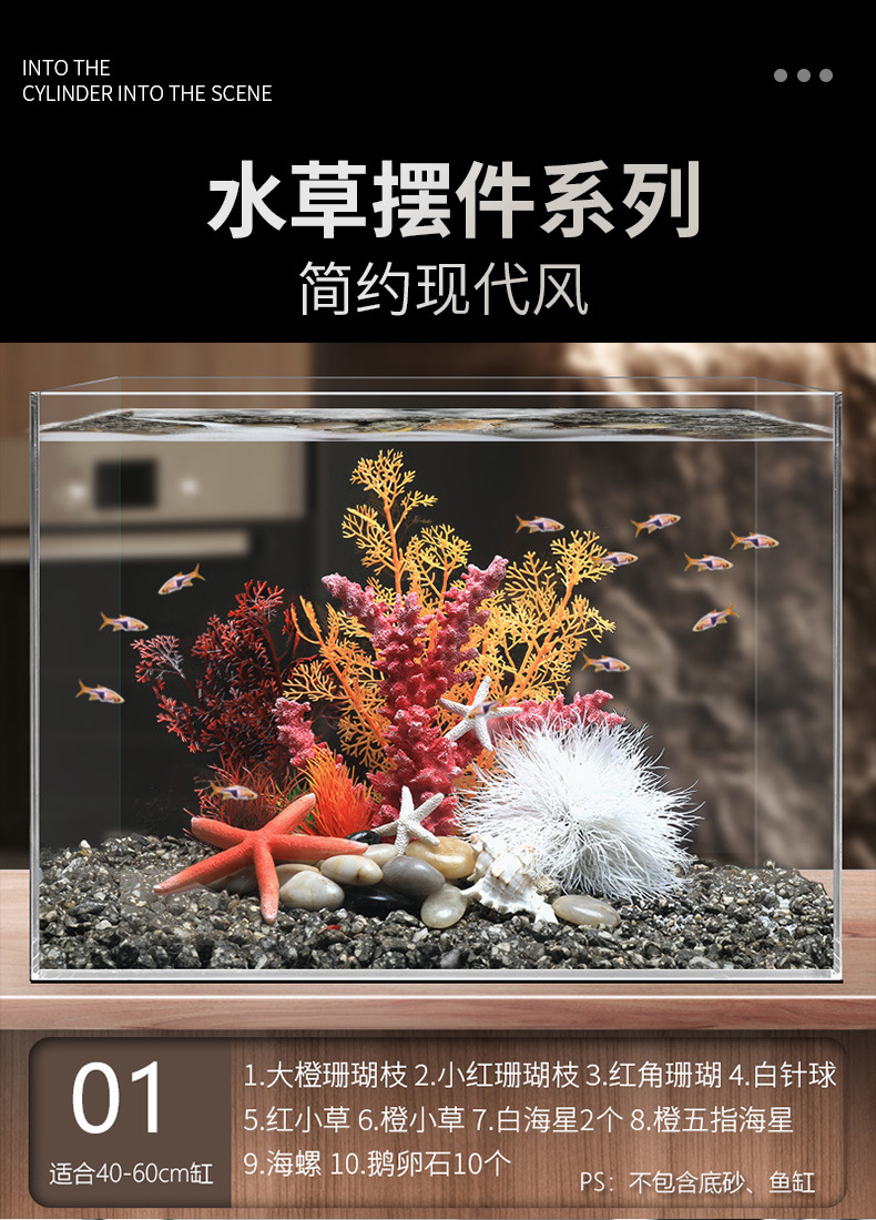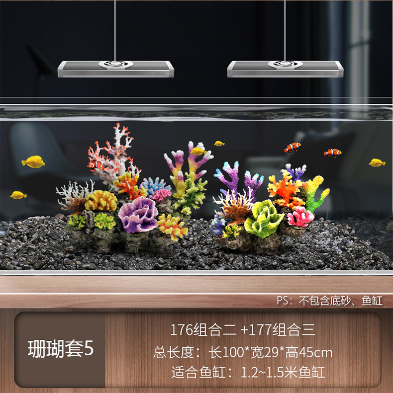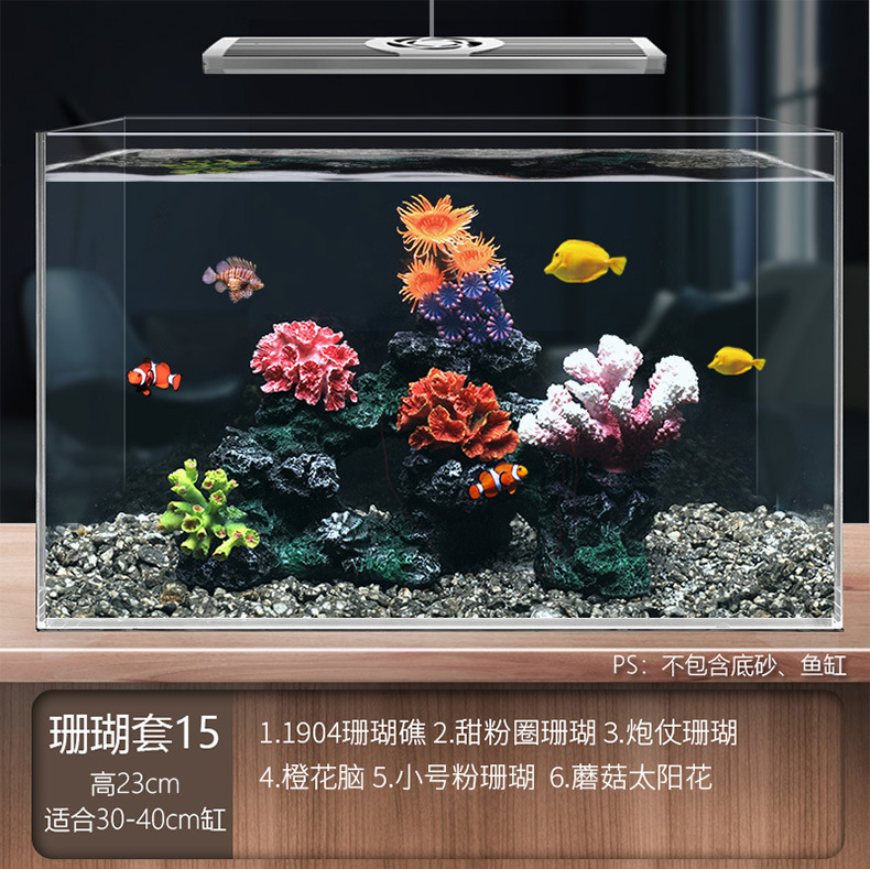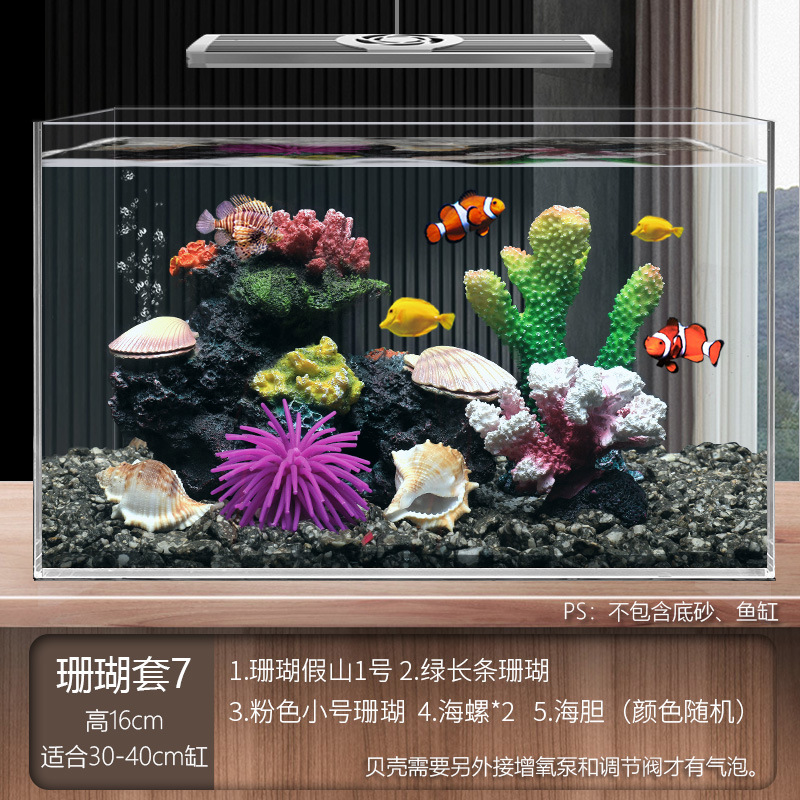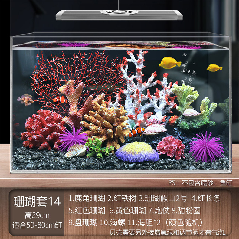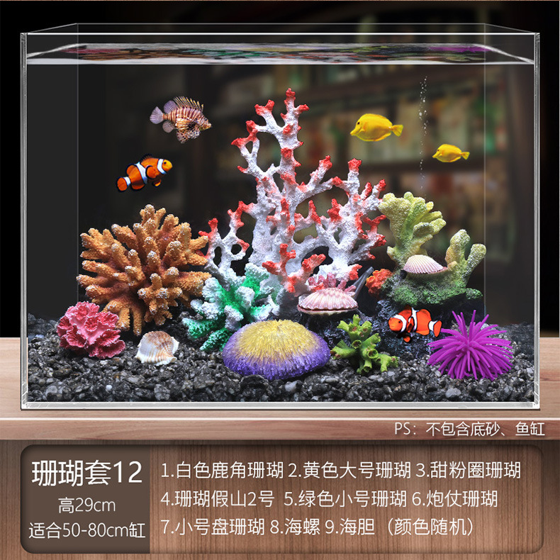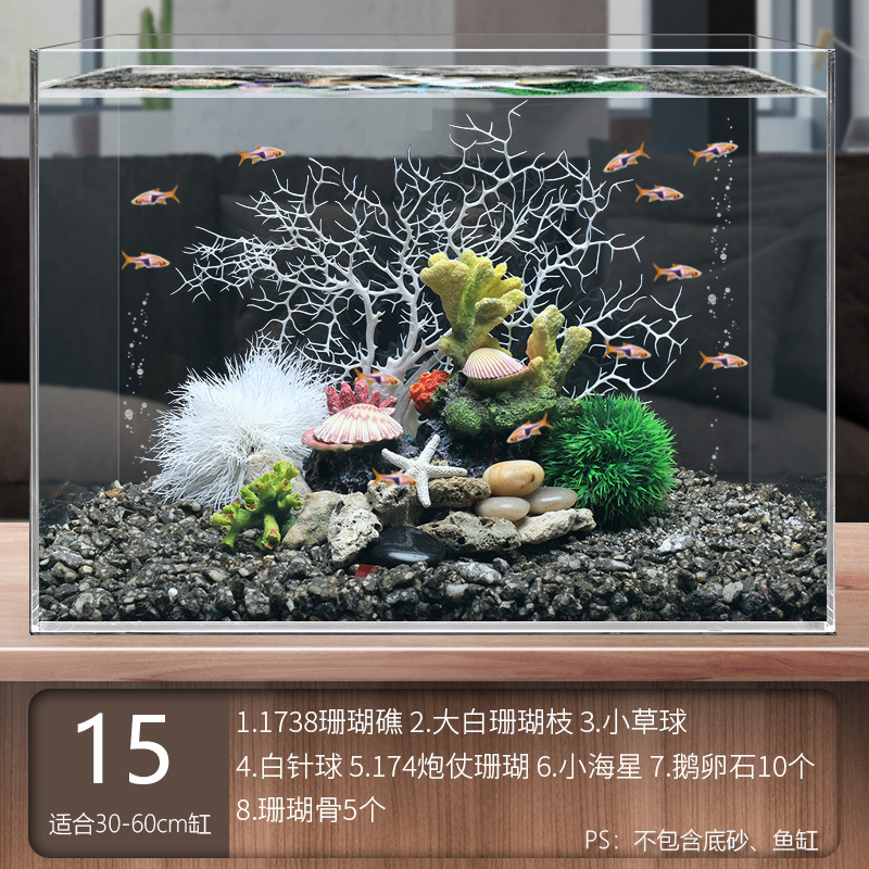국경 간 수조 조경, 시뮬레이션 수생 식물, 가짜 암석 장식 작은 장식품 패키지, 수족관 바닥 모래 산호 장면의 전체 세트스토어 가기