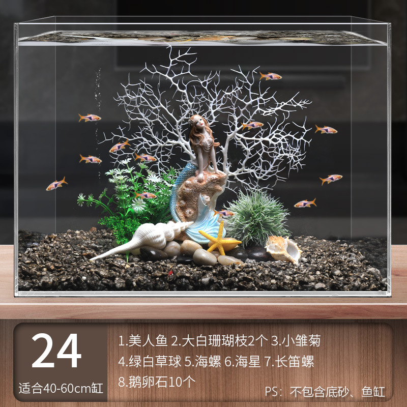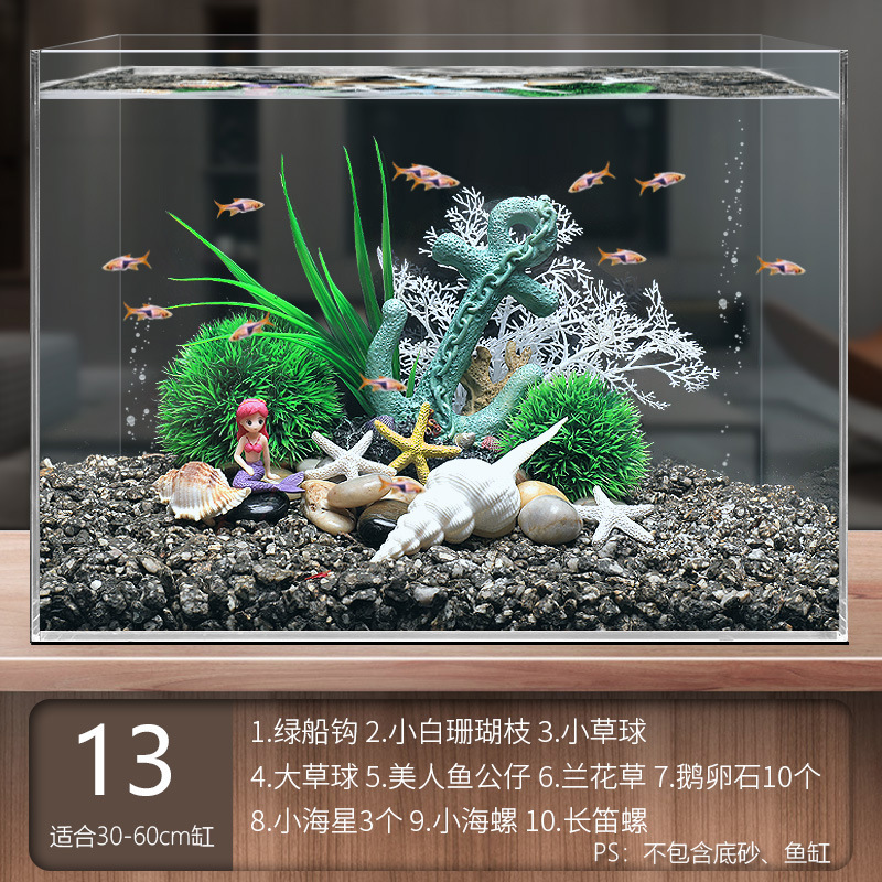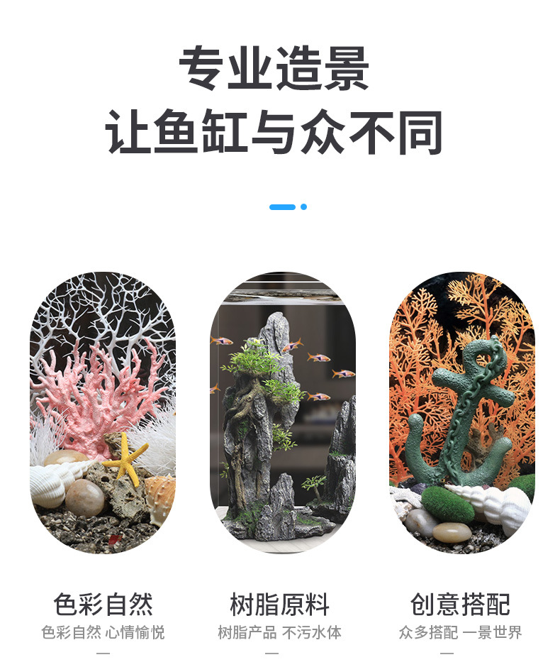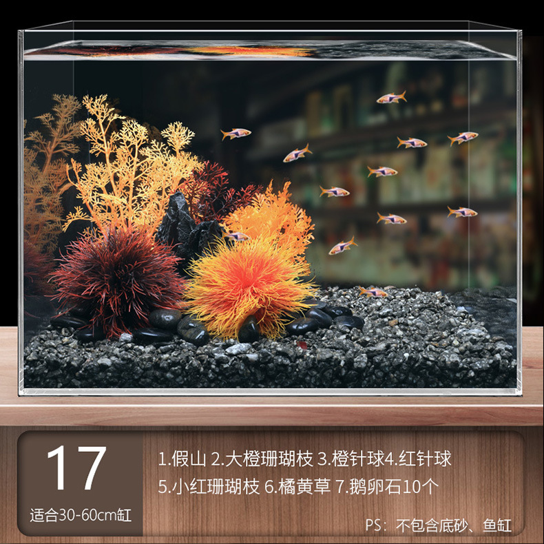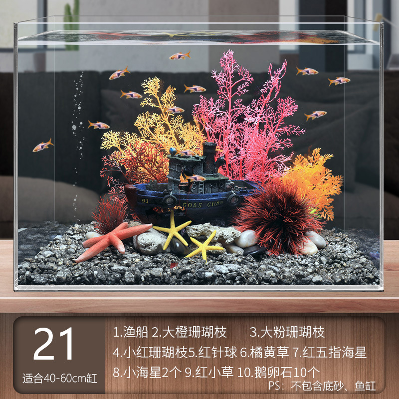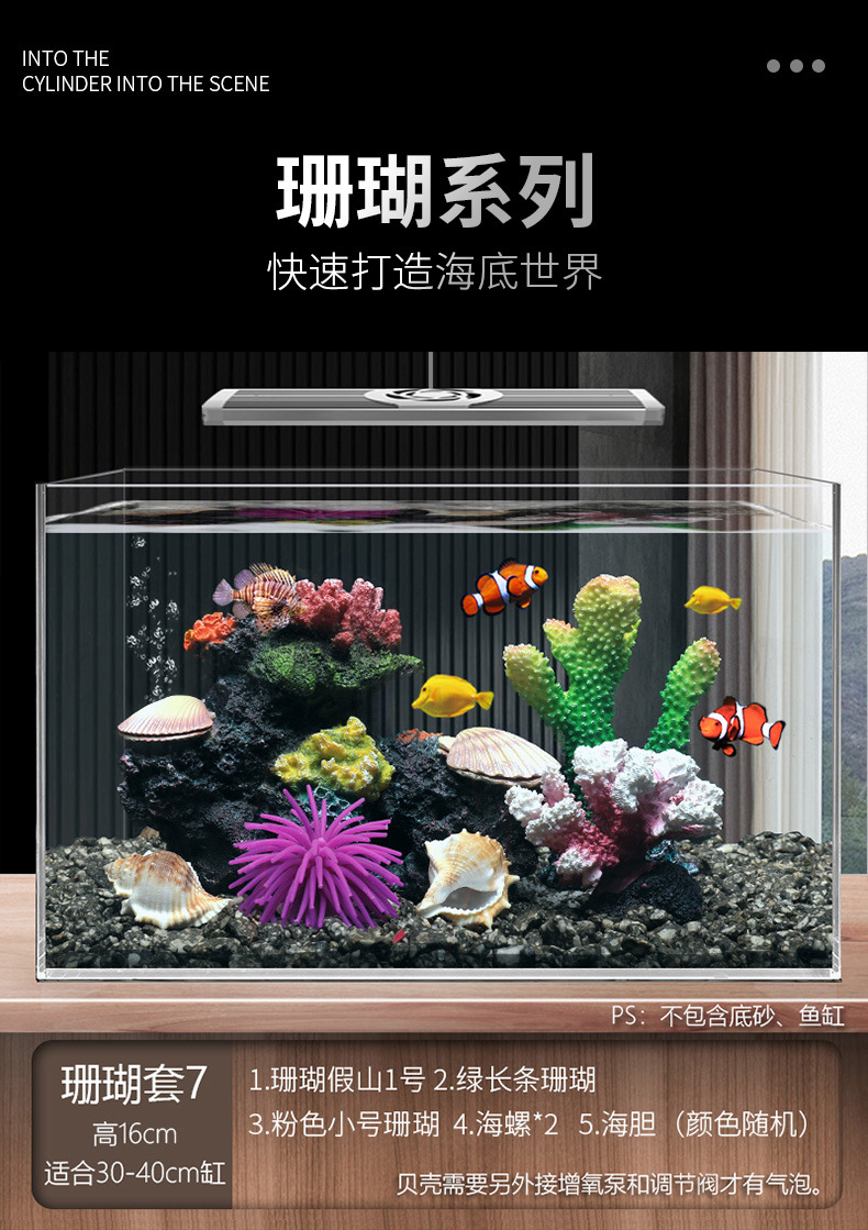 국경 간 수조 조경, 시뮬레이션 수생 식물, 가짜 암석 장식 작은 장식품 패키지, 수족관 바닥 모래 산호 장면의 전체 세트스토어 가기