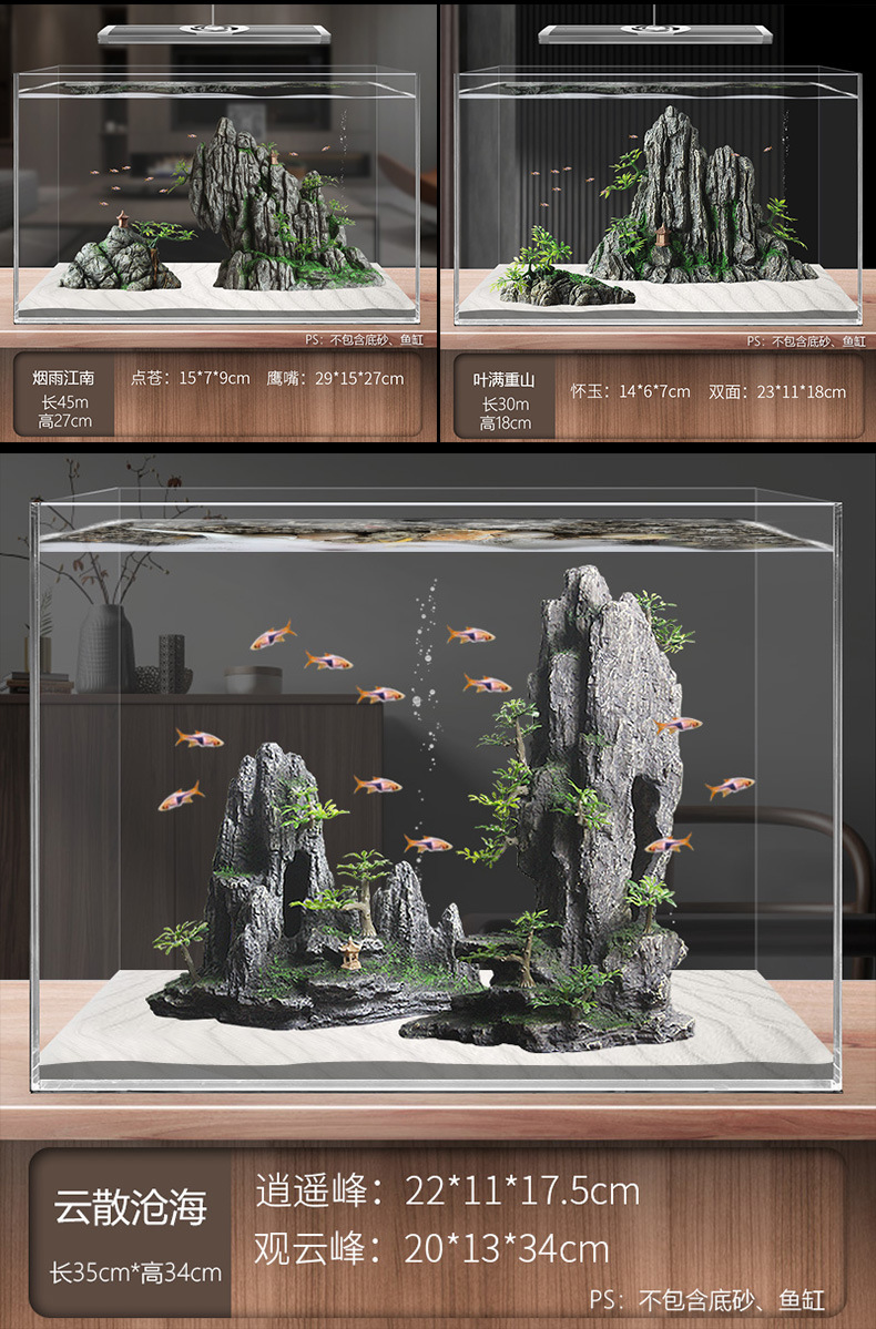 국경 간 수조 조경, 시뮬레이션 수생 식물, 가짜 암석 장식 작은 장식품 패키지, 수족관 바닥 모래 산호 장면의 전체 세트