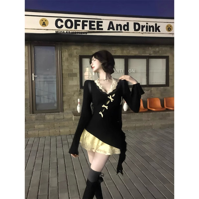 순수한 욕망 스타일 원피스 여성의 2025 새로운 봄과 가을 착용 세트 레이스 탑 디자인 센스 투피스 세트