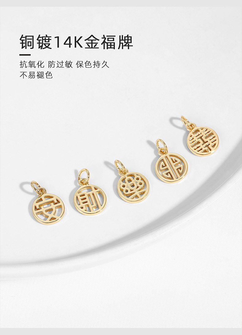 구리 도금 14K 골드 컬러 펜던트 액세서리 작은 보석 도매 수제 DIY 목걸이 팔찌 푸 브랜드 펜던트 단일 펜던트