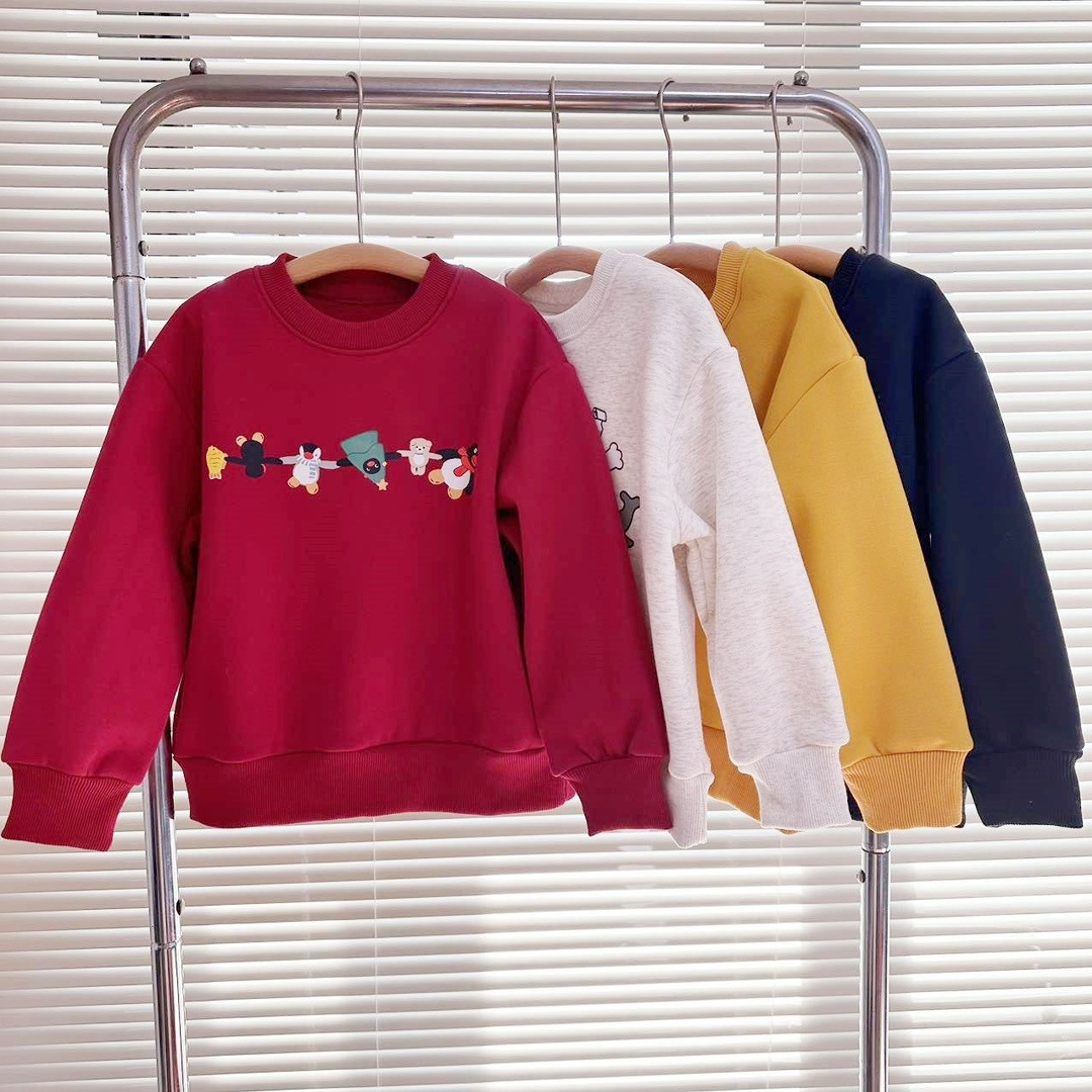 2024 겨울 새로운 느슨한 멀티 컬러 만화 자수 한국 스타일 둥근 목 인쇄 따뜻한 실 긴 소매 스웨트 셔츠