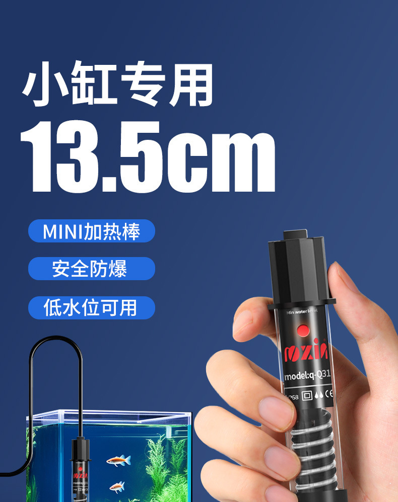 미니 가열 막대 물고기 탱크 자동 일정한 온도 물고기 낮은 물 수준 거북이 탱크 히터 짧은 가열 막대 작은 온도 제어