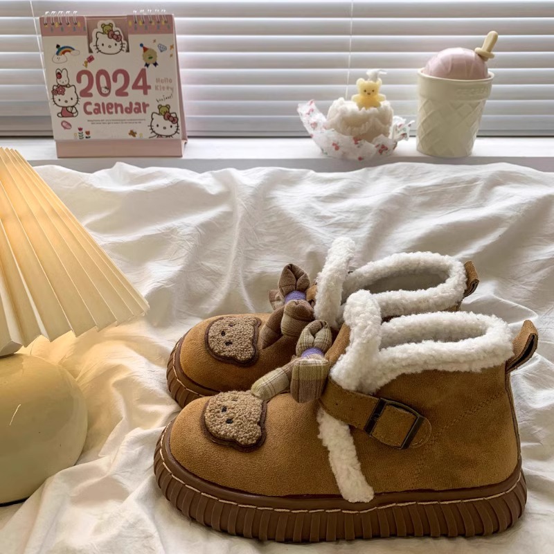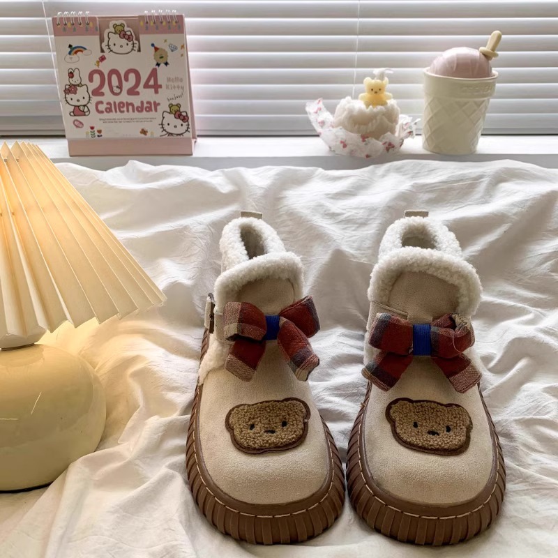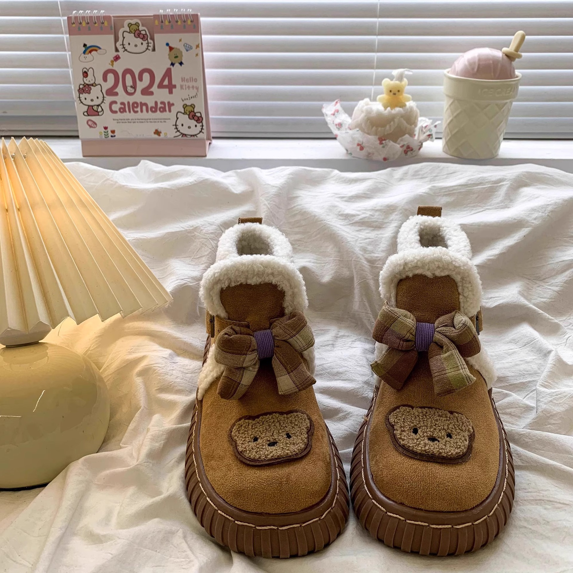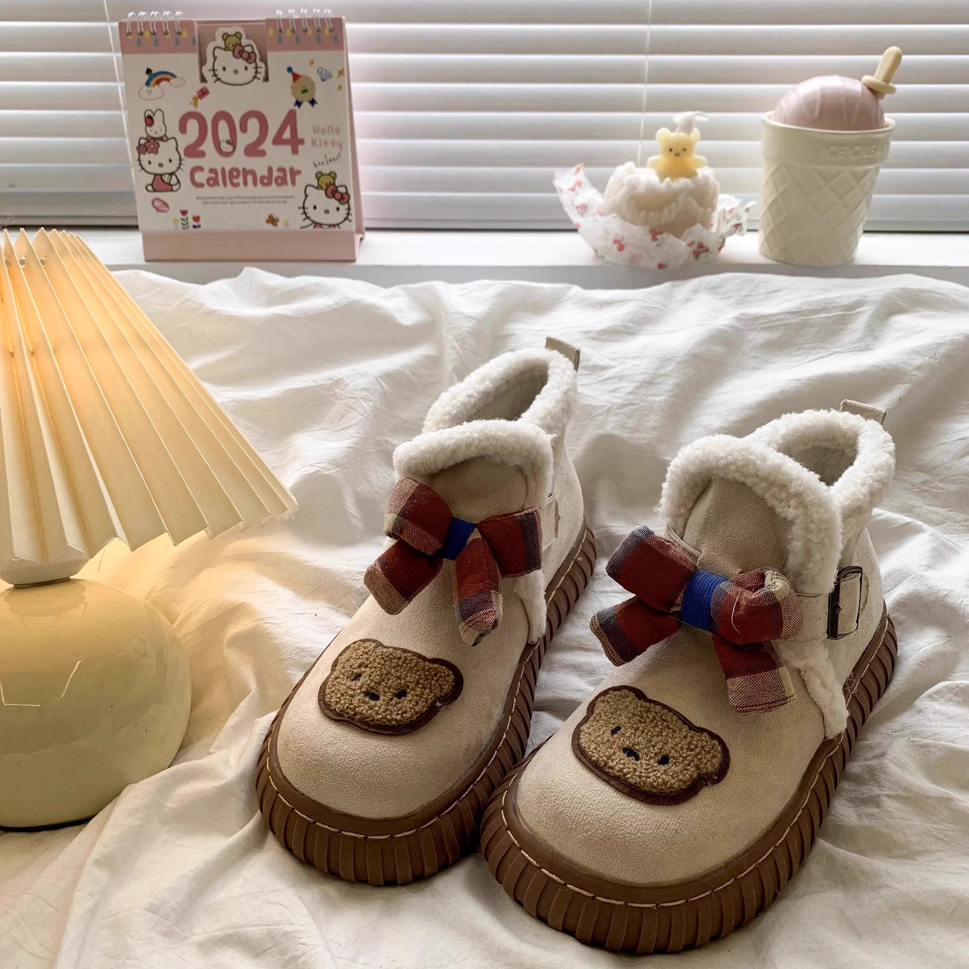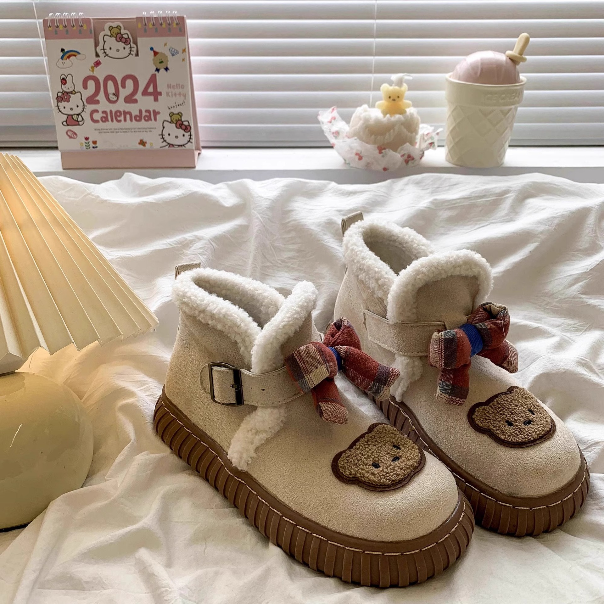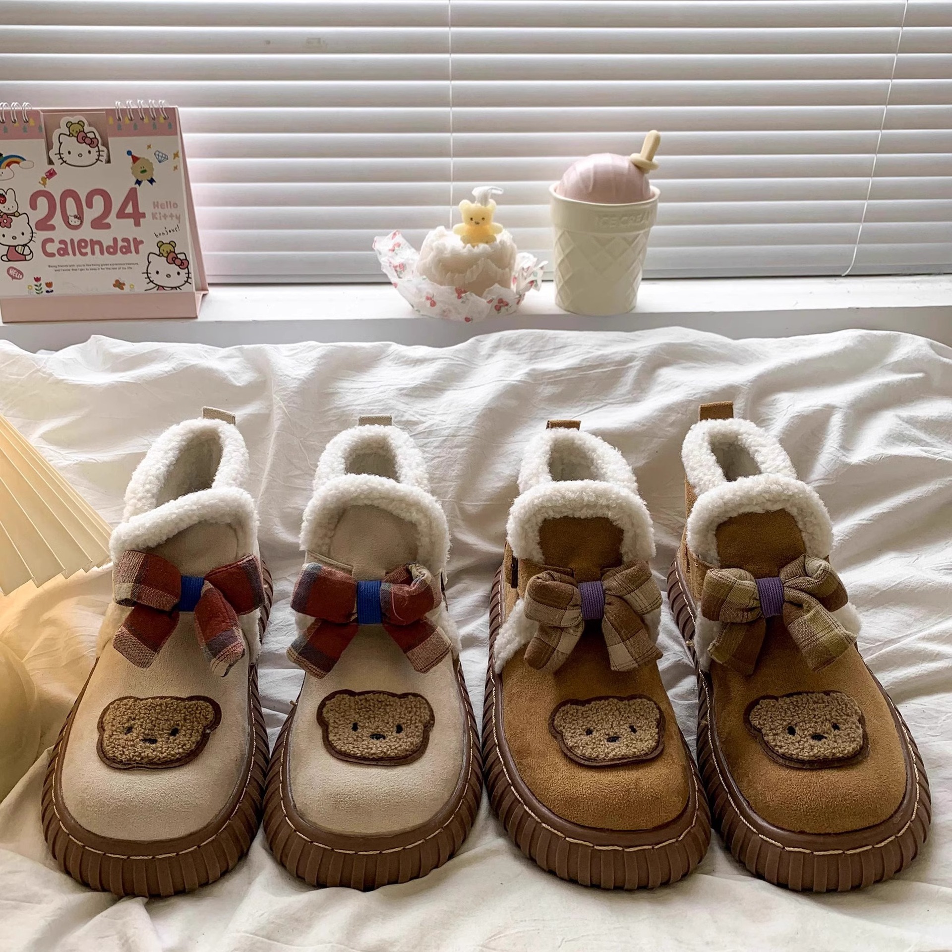 귀여운 동북 스노우 부츠 여성의 2024 겨울 새 기모 두꺼운 따뜻한 방수 미끄럼 방지 로우 플랫폼 코튼 슈즈