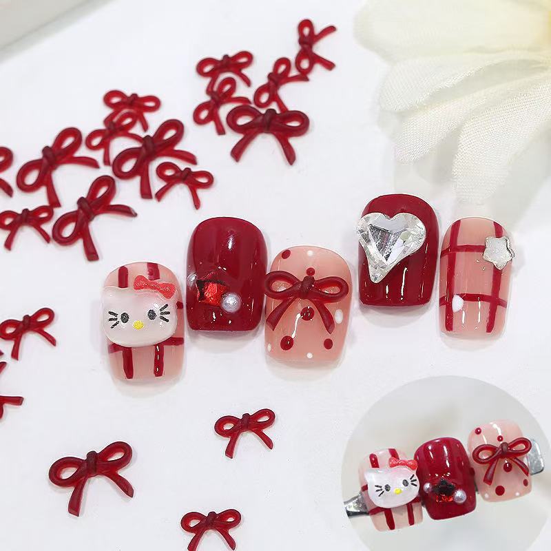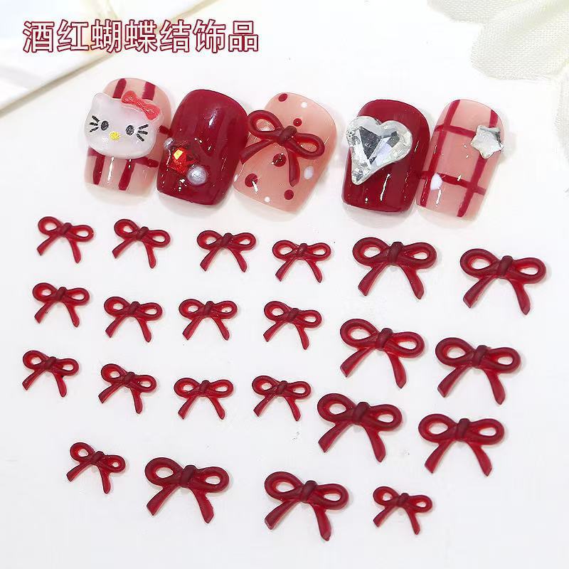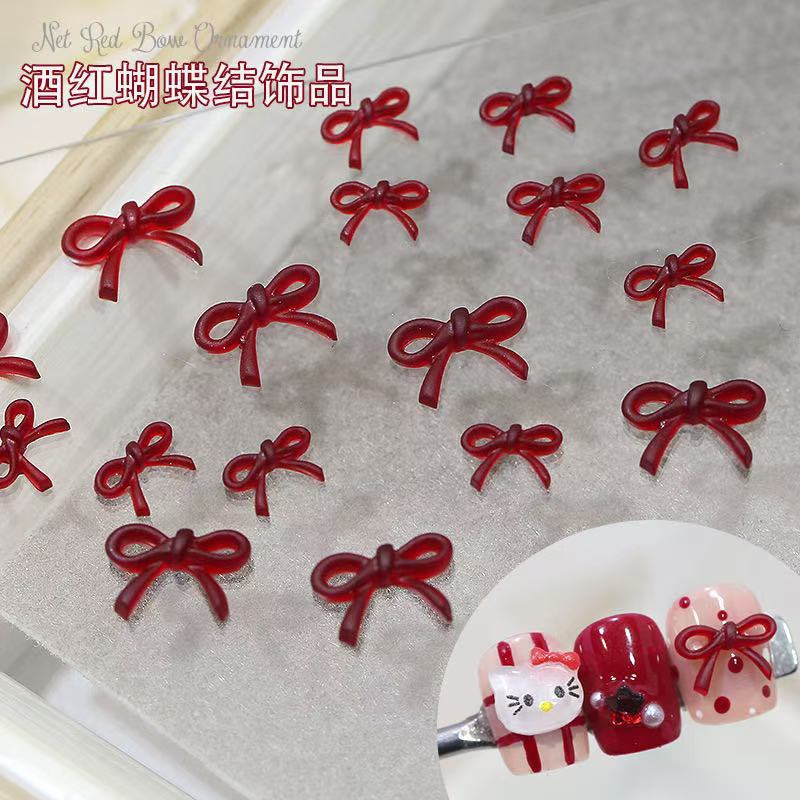 빨간 서예 버건디 활 네일 아트 장식 체리 레드 미니 수지 보석 네일 액세서리 도매스토어 가기