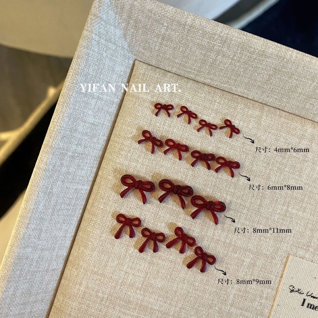 빨간 서예 버건디 활 네일 아트 장식 체리 레드 미니 수지 보석 네일 액세서리 도매