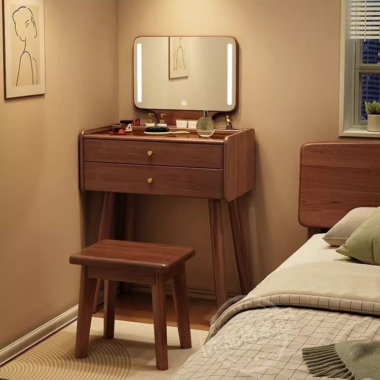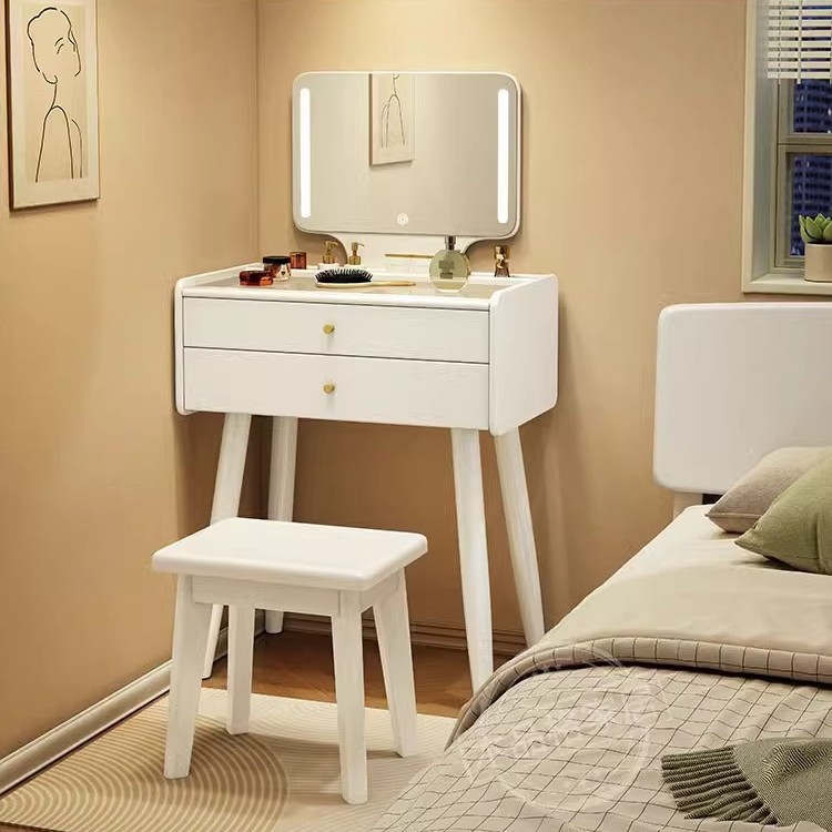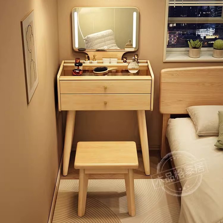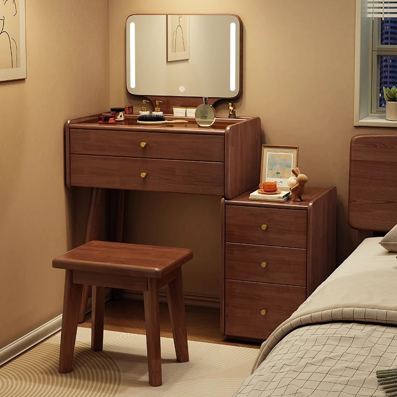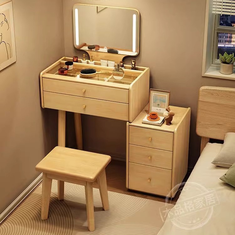 새로운 스타일 모든 단단한 나무 드레싱 테이블 현대 간단한 화장품 캐비닛 침실 드레싱 테이블 작은 아파트 양동이 캐비닛 통합 메이크업 테이블스토어 가기