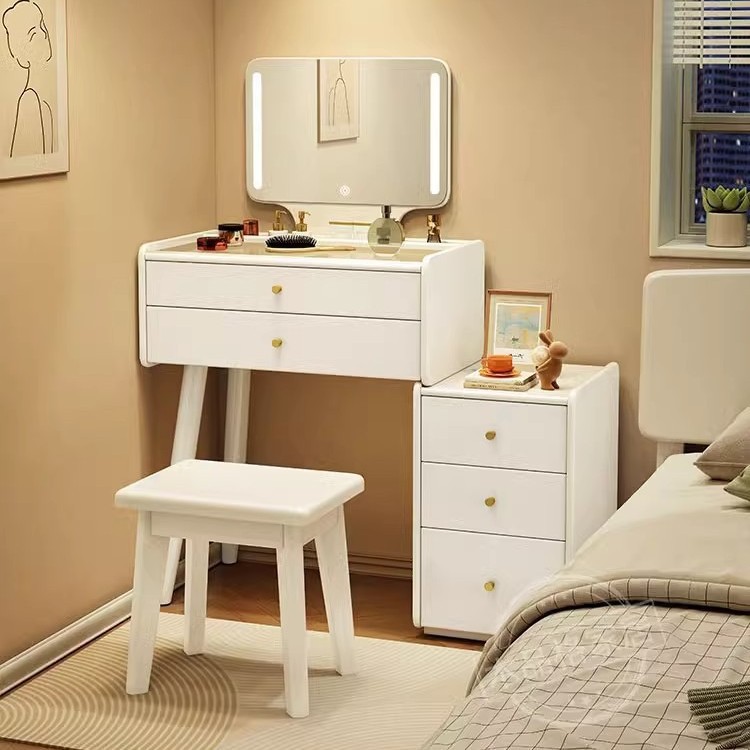 새로운 스타일 모든 단단한 나무 드레싱 테이블 현대 간단한 화장품 캐비닛 침실 드레싱 테이블 작은 아파트 양동이 캐비닛 통합 메이크업 테이블