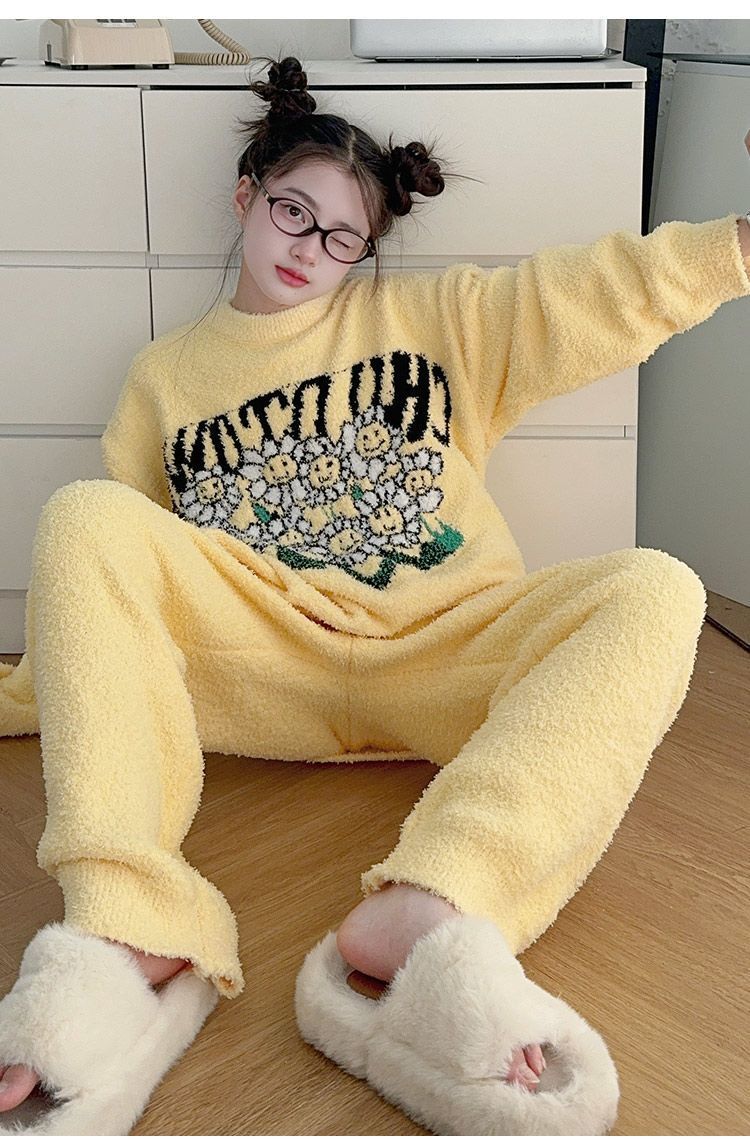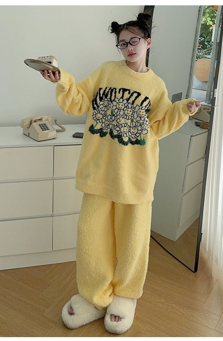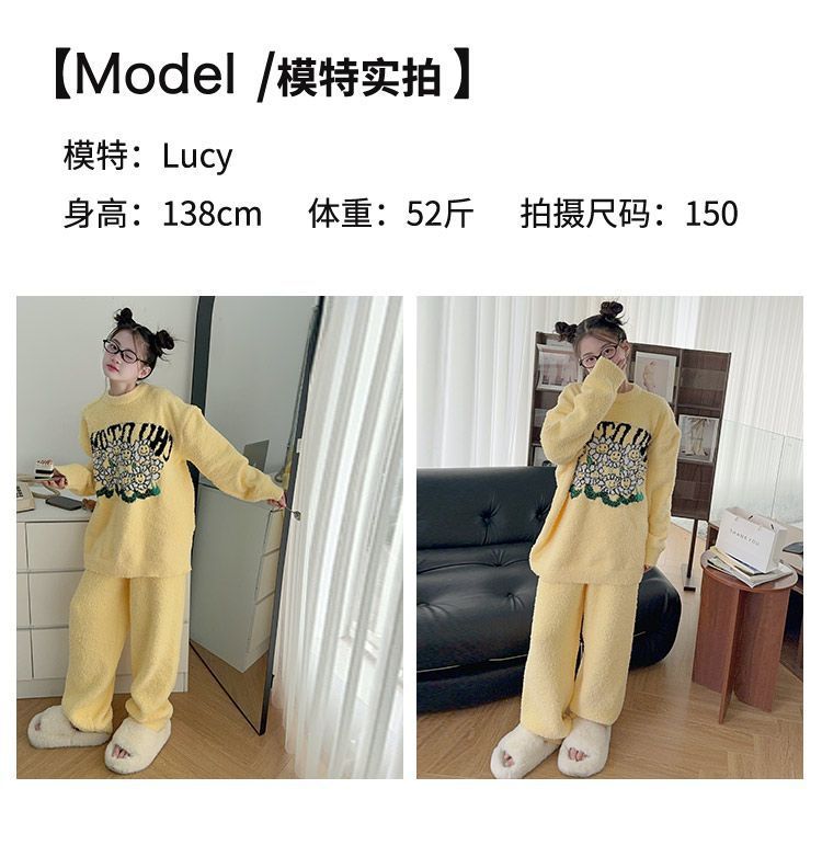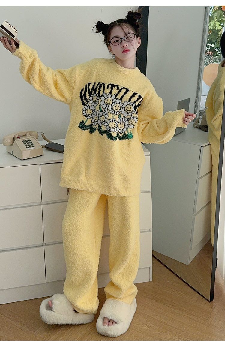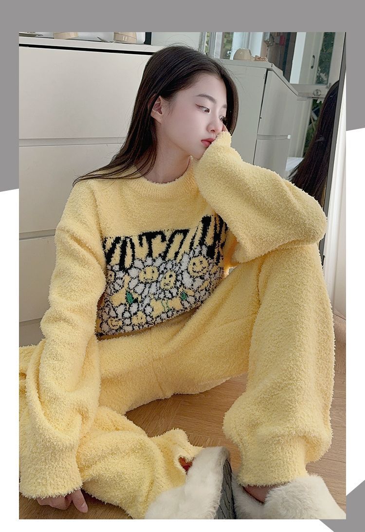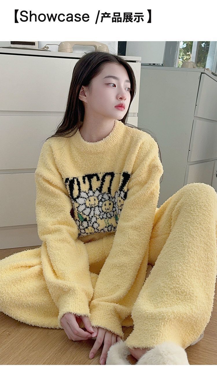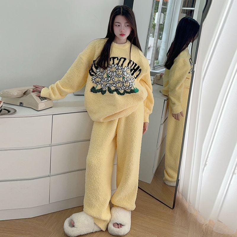 인터넷 레드 스타일 의상 데이지 파자마 여성 가을과 겨울 반쪽 벨벳 기모 두꺼운 겨울 산호 벨벳 홈 옷스토어 가기