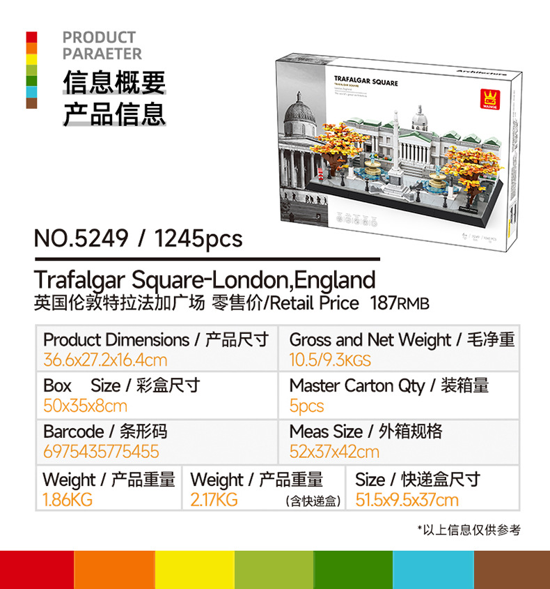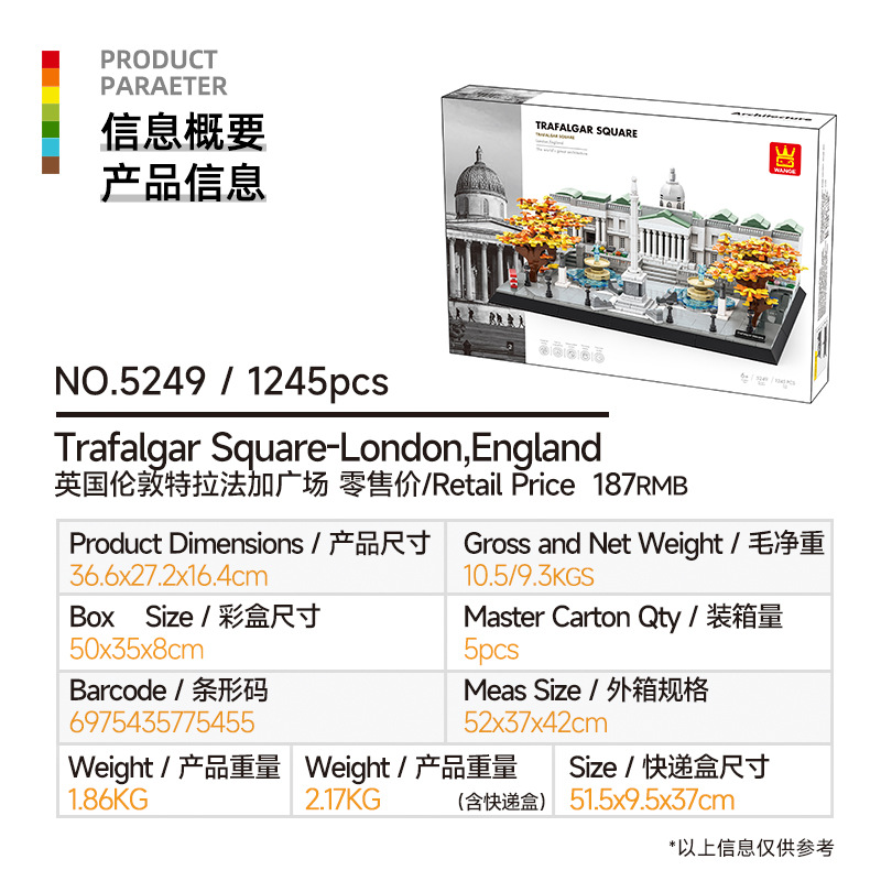 Wanger 빌딩 블록, 트라팔가 스퀘어 빌딩, 런던, 영국 국내 소형 입자 빌딩 블록 조립 된 건물 블록 장식품스토어 가기