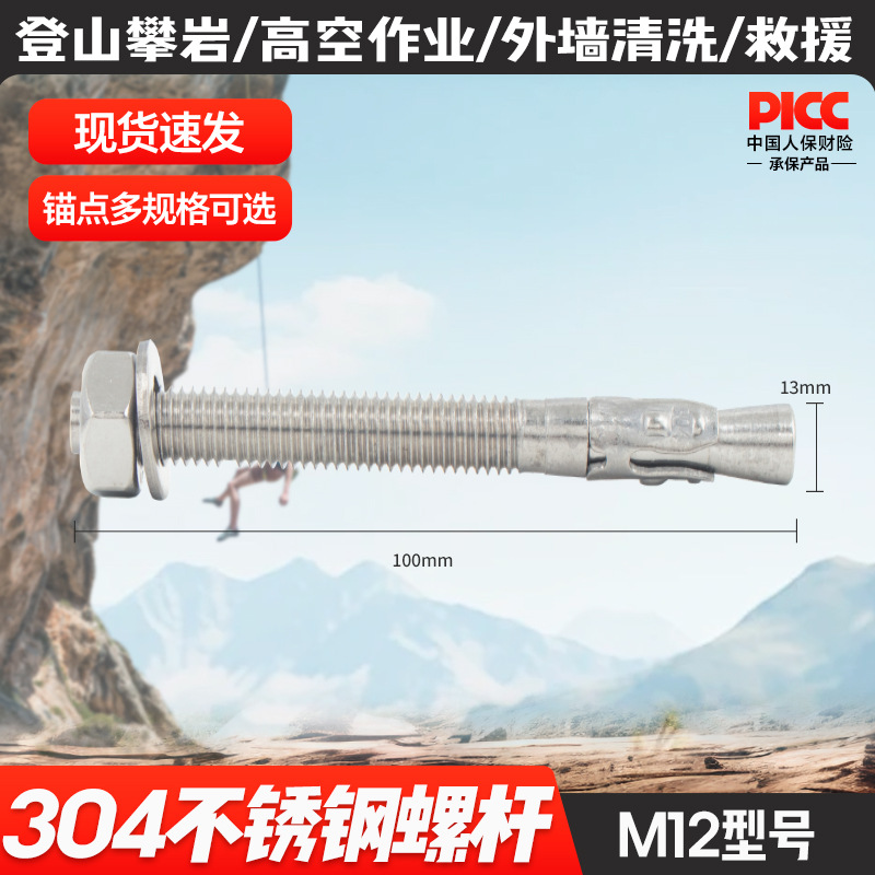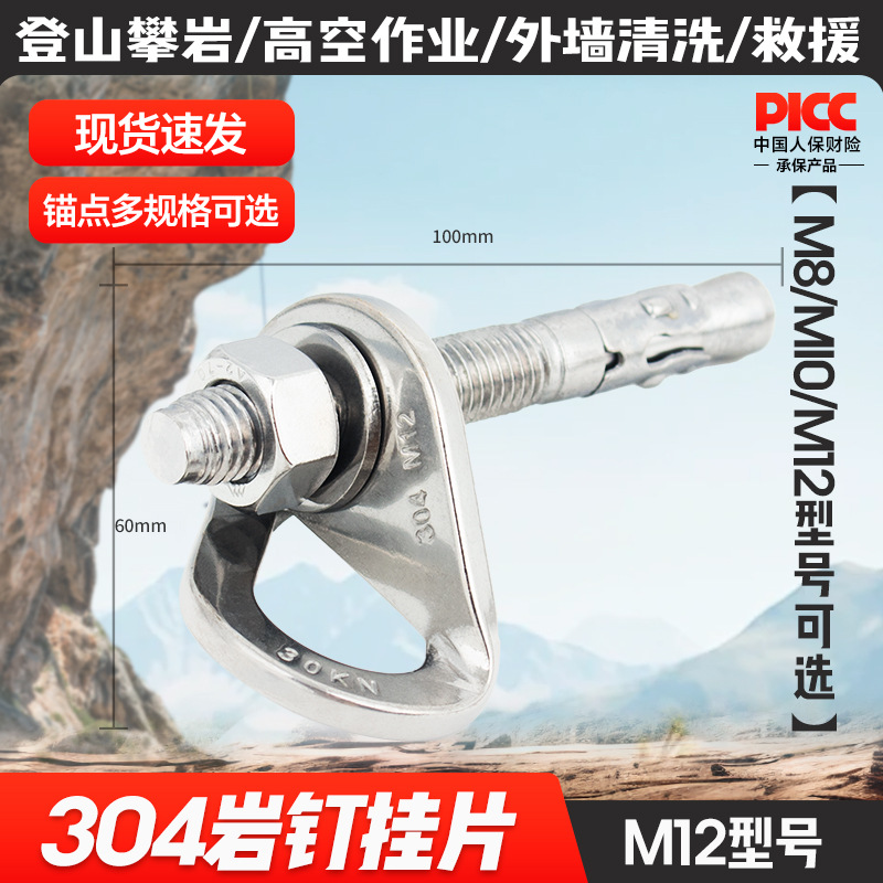 M12 교수형 조각 분리 가능한 앵커 포인트 304 스테인레스 스틸 확장 바위 못 m10 공중 작업 암벽 등반 안전 로프 고정스토어 가기