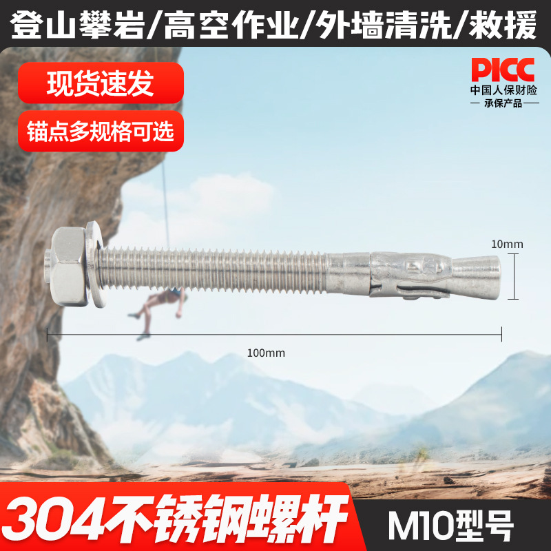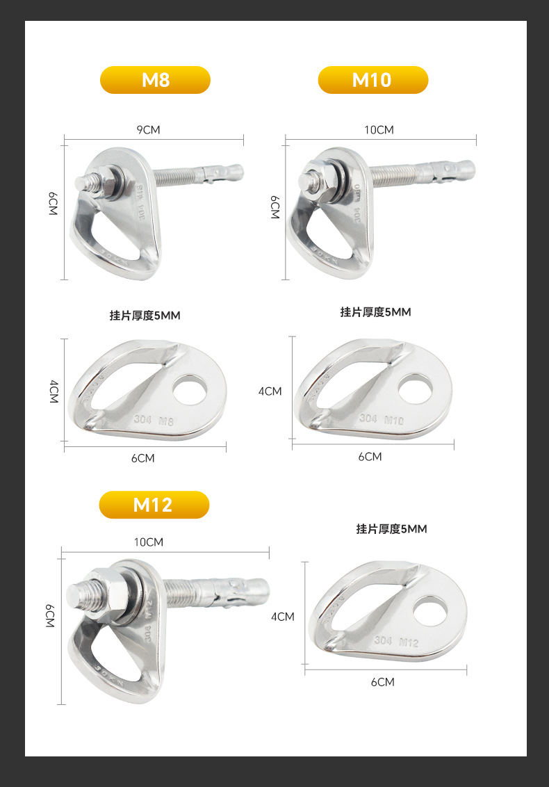 M12 교수형 조각 분리 가능한 앵커 포인트 304 스테인레스 스틸 확장 바위 못 m10 공중 작업 암벽 등반 안전 로프 고정