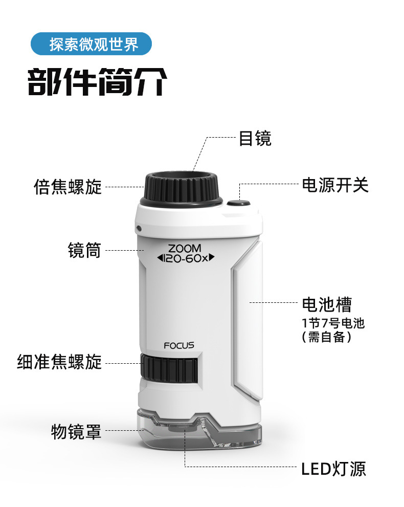 3-6-12 세 초등학생을 위한 휴대용 현미경 어린이 과학 실험 휴대용 소형 현미경 장난감