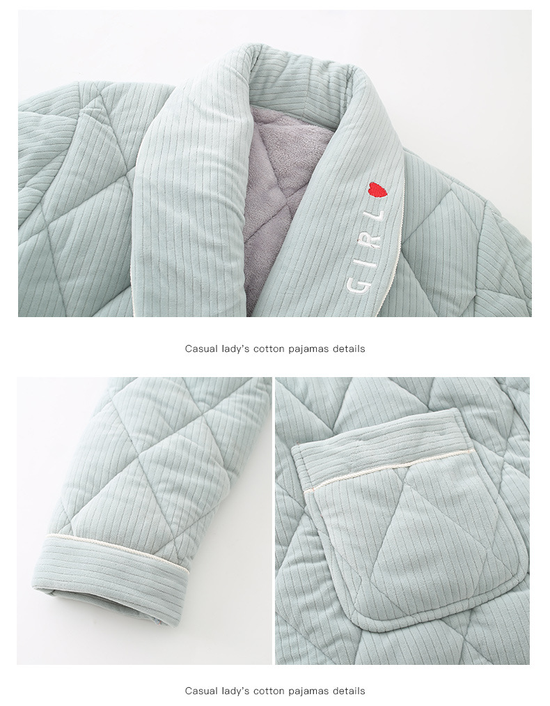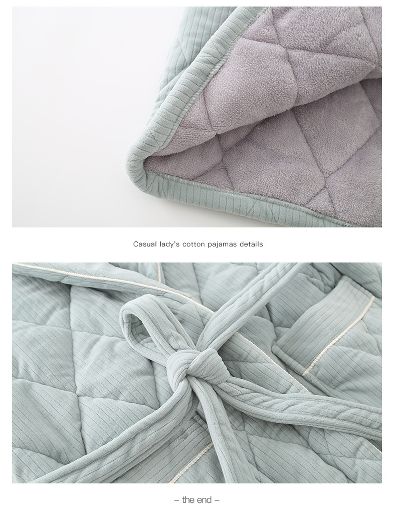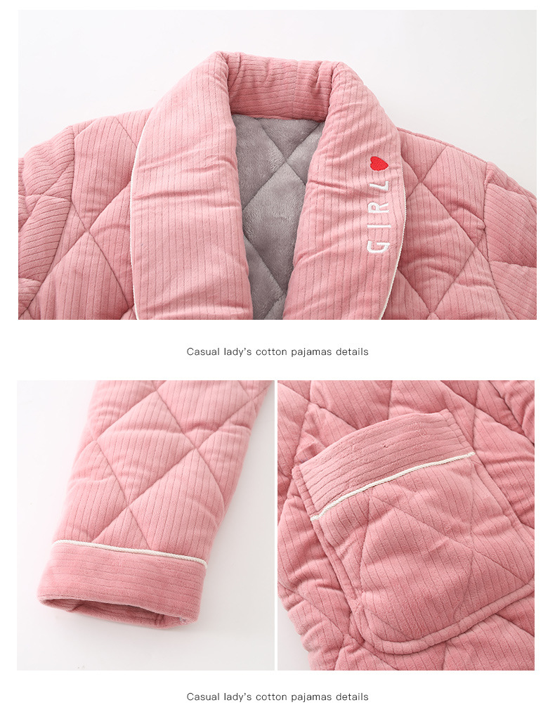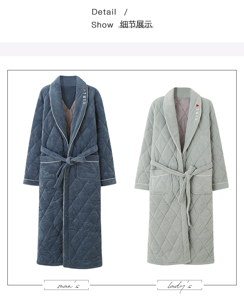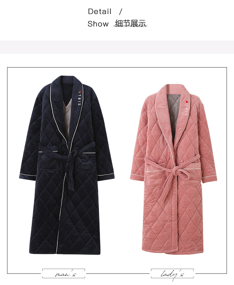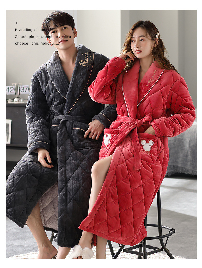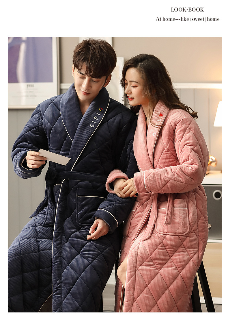 새로운 커플의 잠옷 여성의 겨울 두꺼운 긴 산호 양털 3 층 퀼트 파자마 남자 기모 따뜻한 두꺼운 목욕 가운스토어 가기
