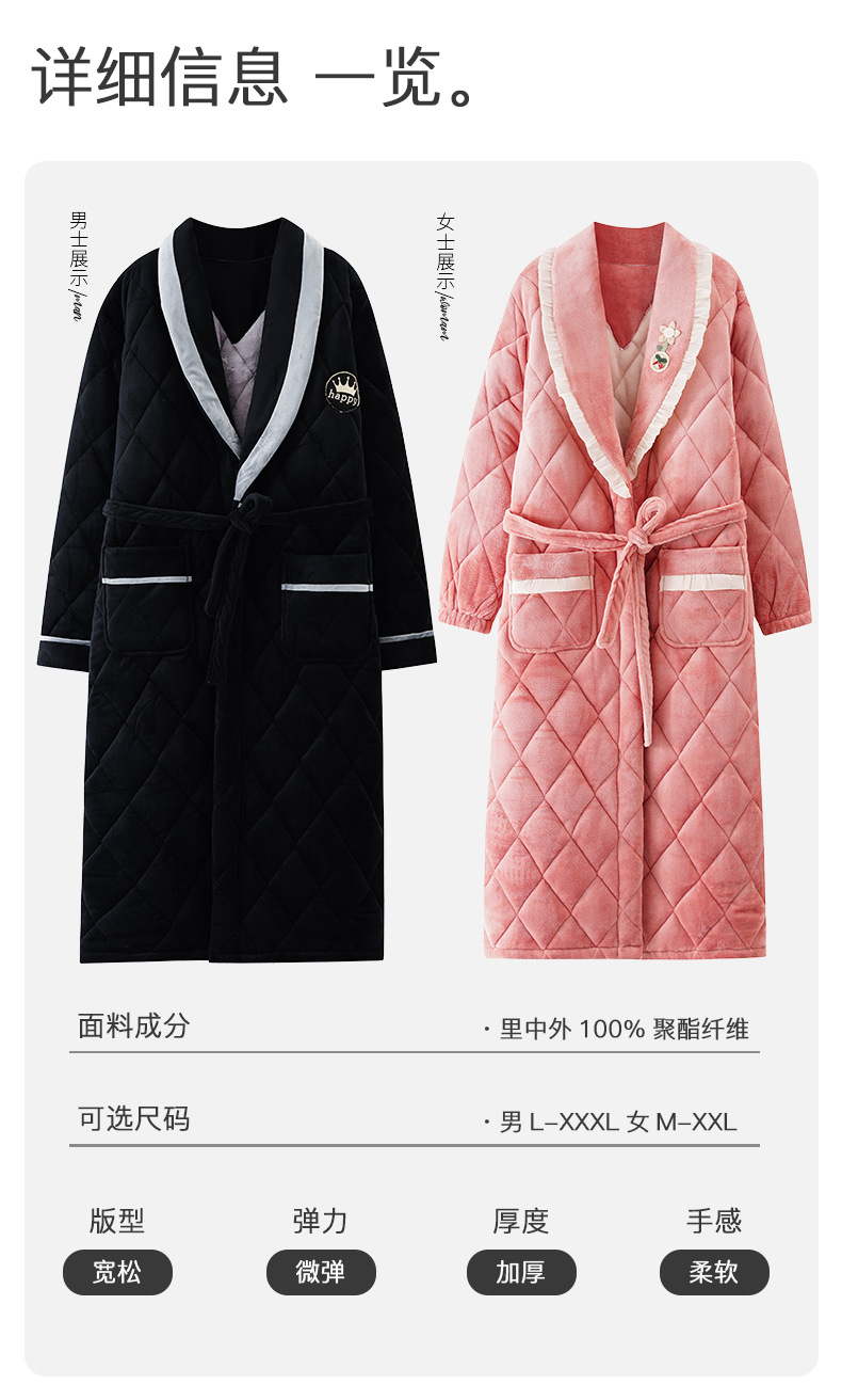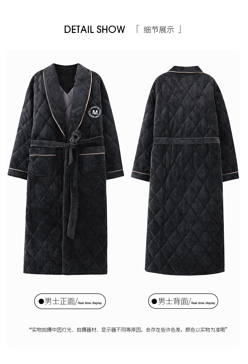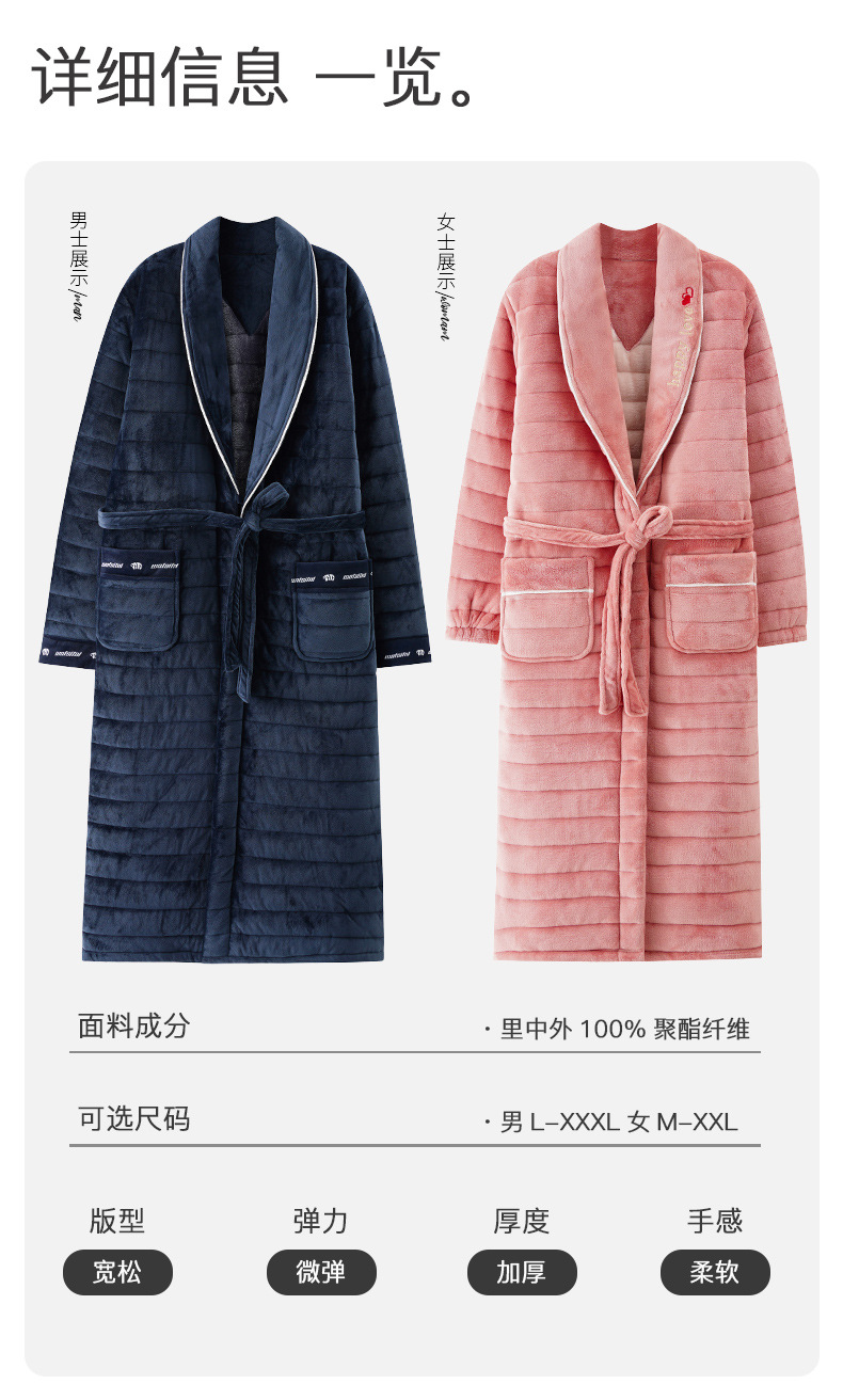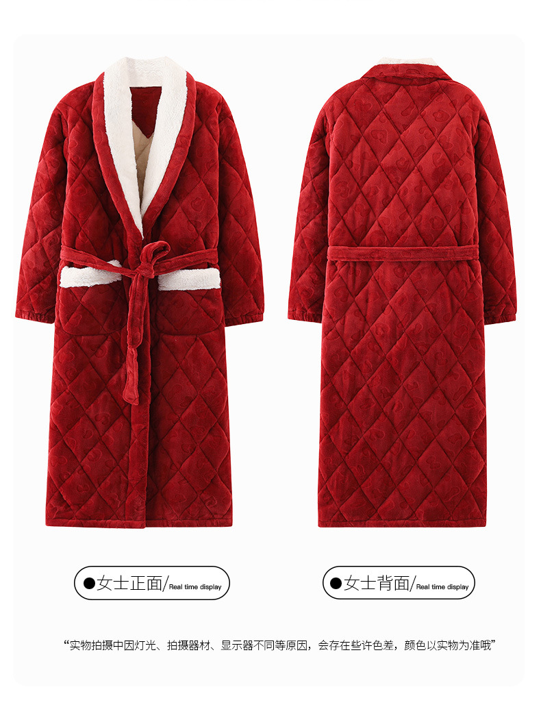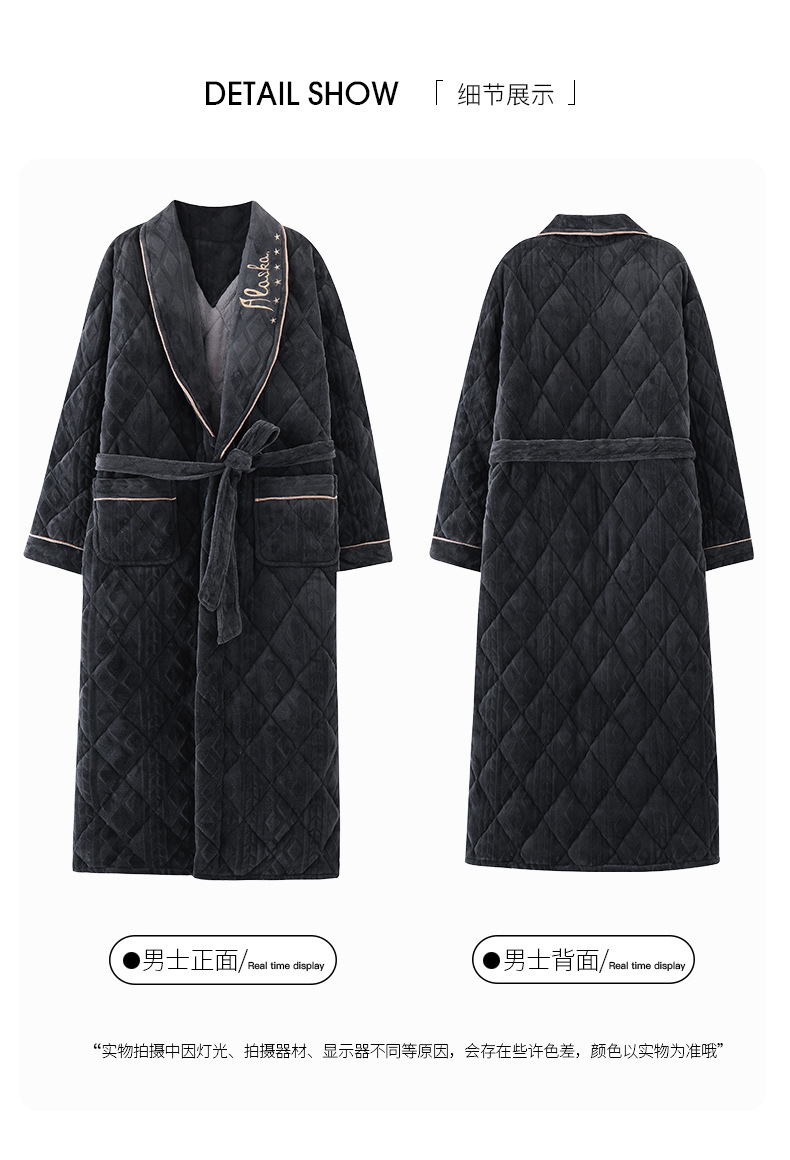 새로운 커플의 잠옷 여성의 겨울 두꺼운 긴 산호 양털 3 층 퀼트 파자마 남자 기모 따뜻한 두꺼운 목욕 가운