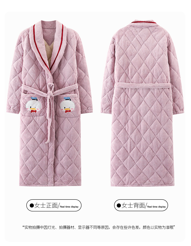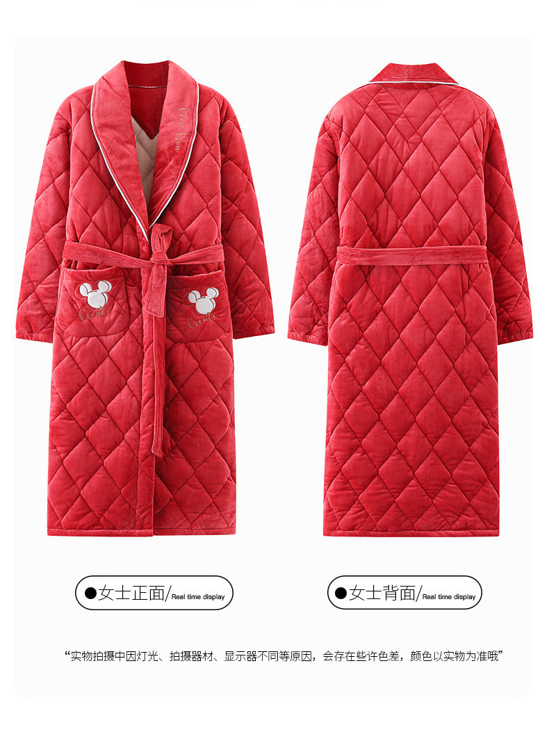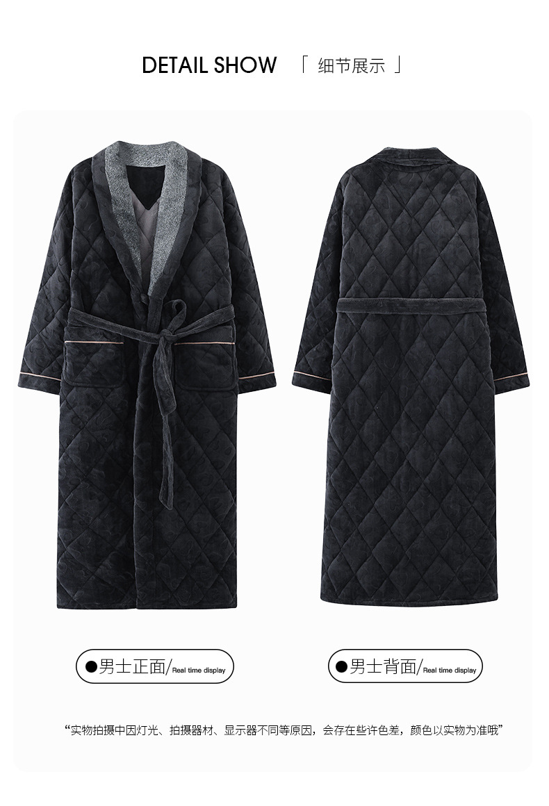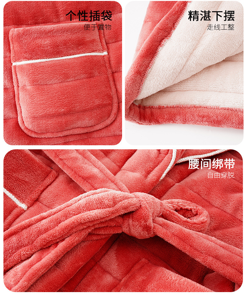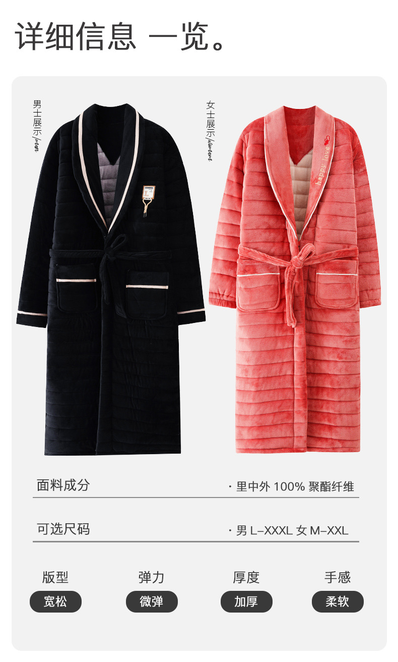 새로운 커플의 잠옷 여성의 겨울 두꺼운 긴 산호 양털 3 층 퀼트 파자마 남자 기모 따뜻한 두꺼운 목욕 가운