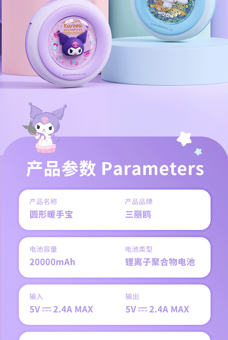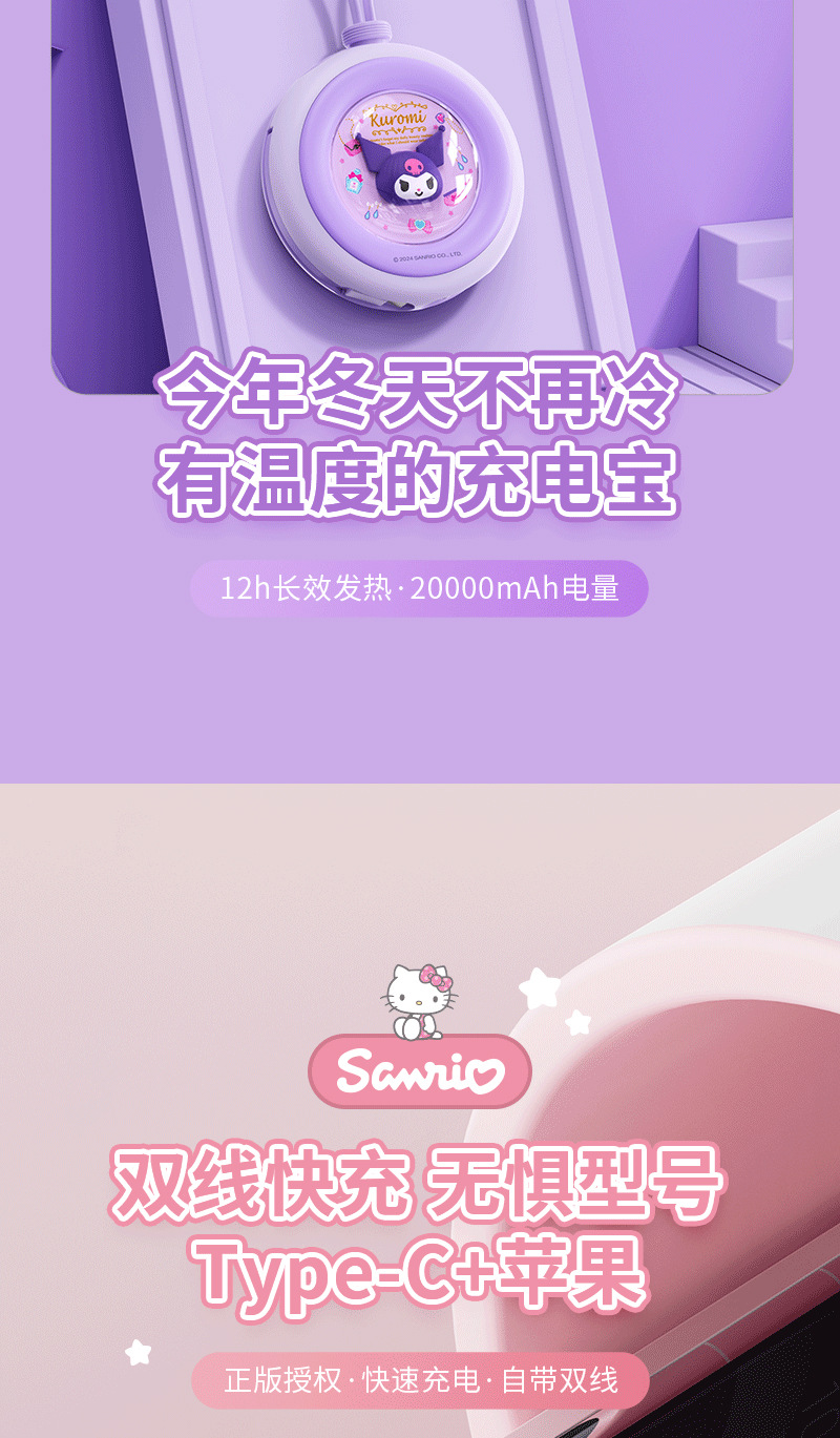 三丽鸥玉桂狗圆形暖手宝充电宝二合一自带线手握式随身便携款스토어 가기