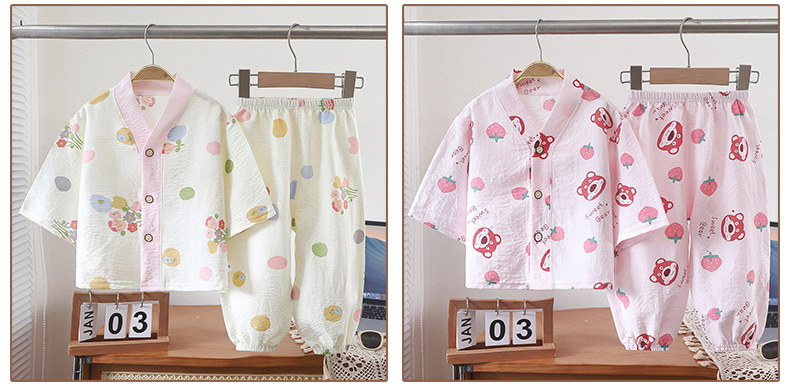 2024 년 새 어린이 홈 의류 세트 소년 소녀를위한 느슨한 얇은 잠옷 한국식 에어컨 옷 투피스 세트