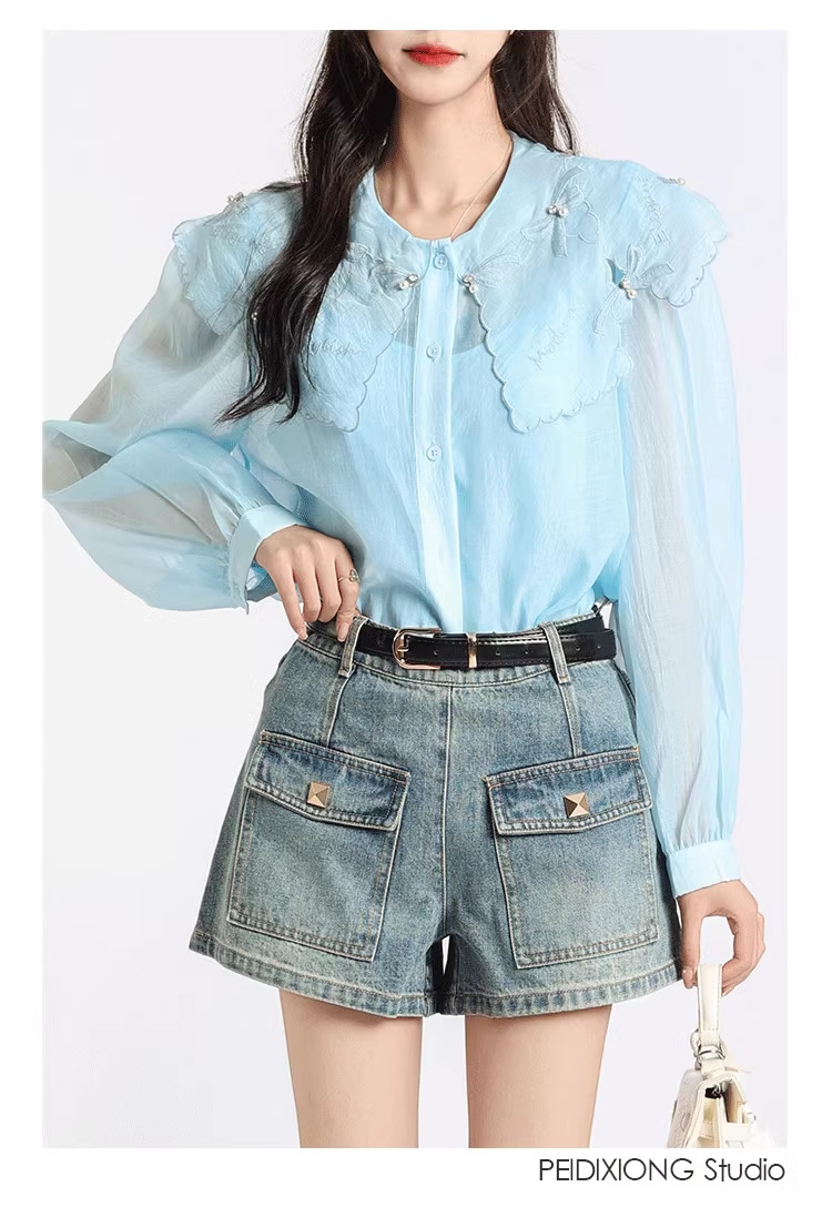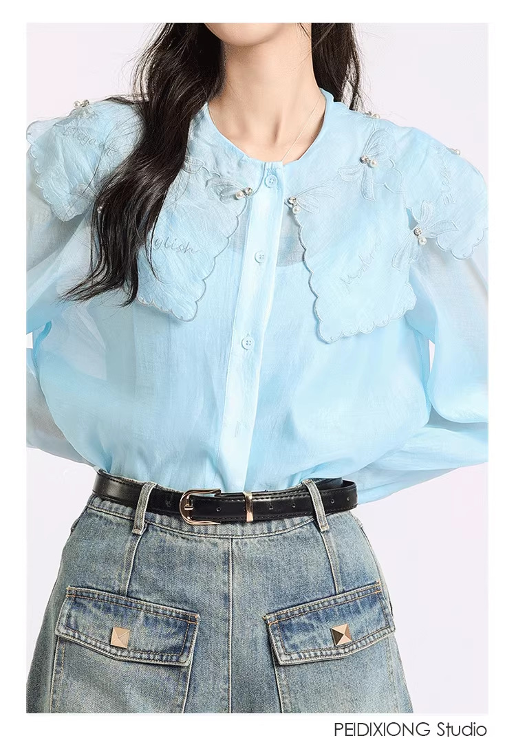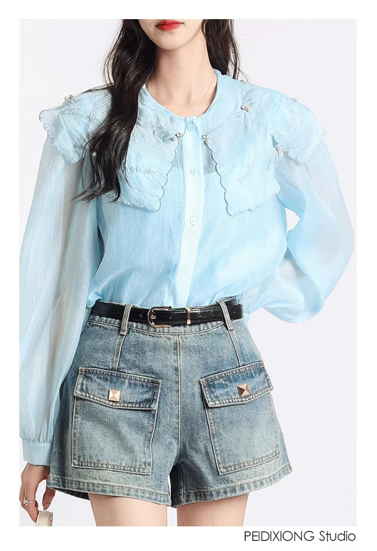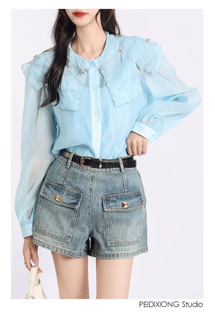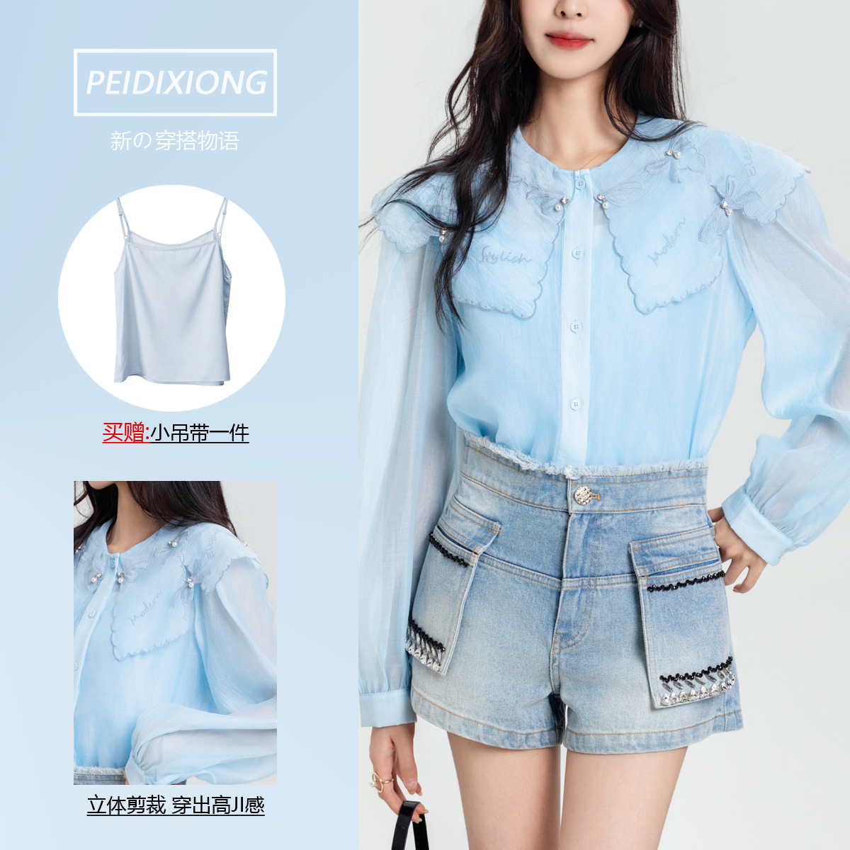 중공업 달콤한 구슬 2024 새로운 슬림 셔츠 탑 긴 소매 여성 투피스 세트스토어 가기