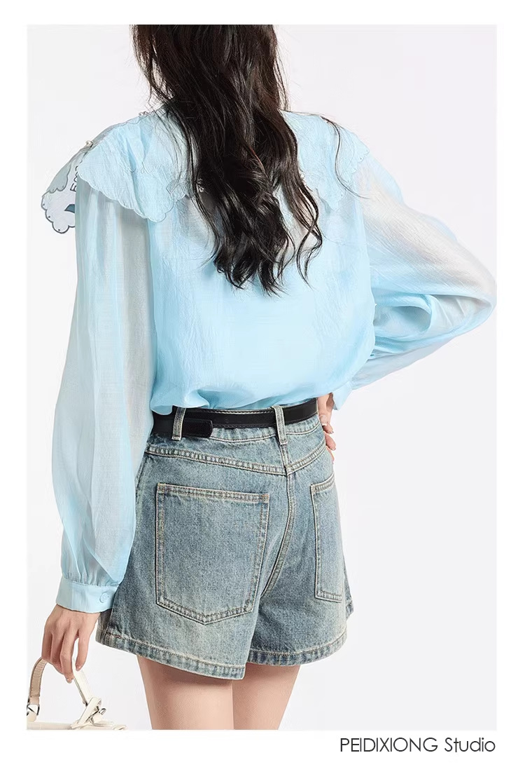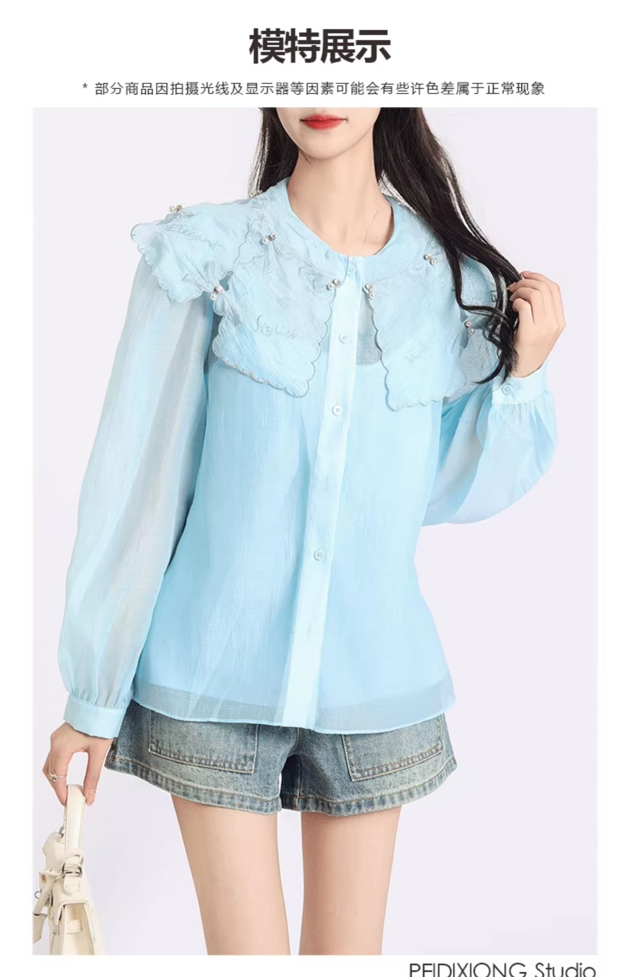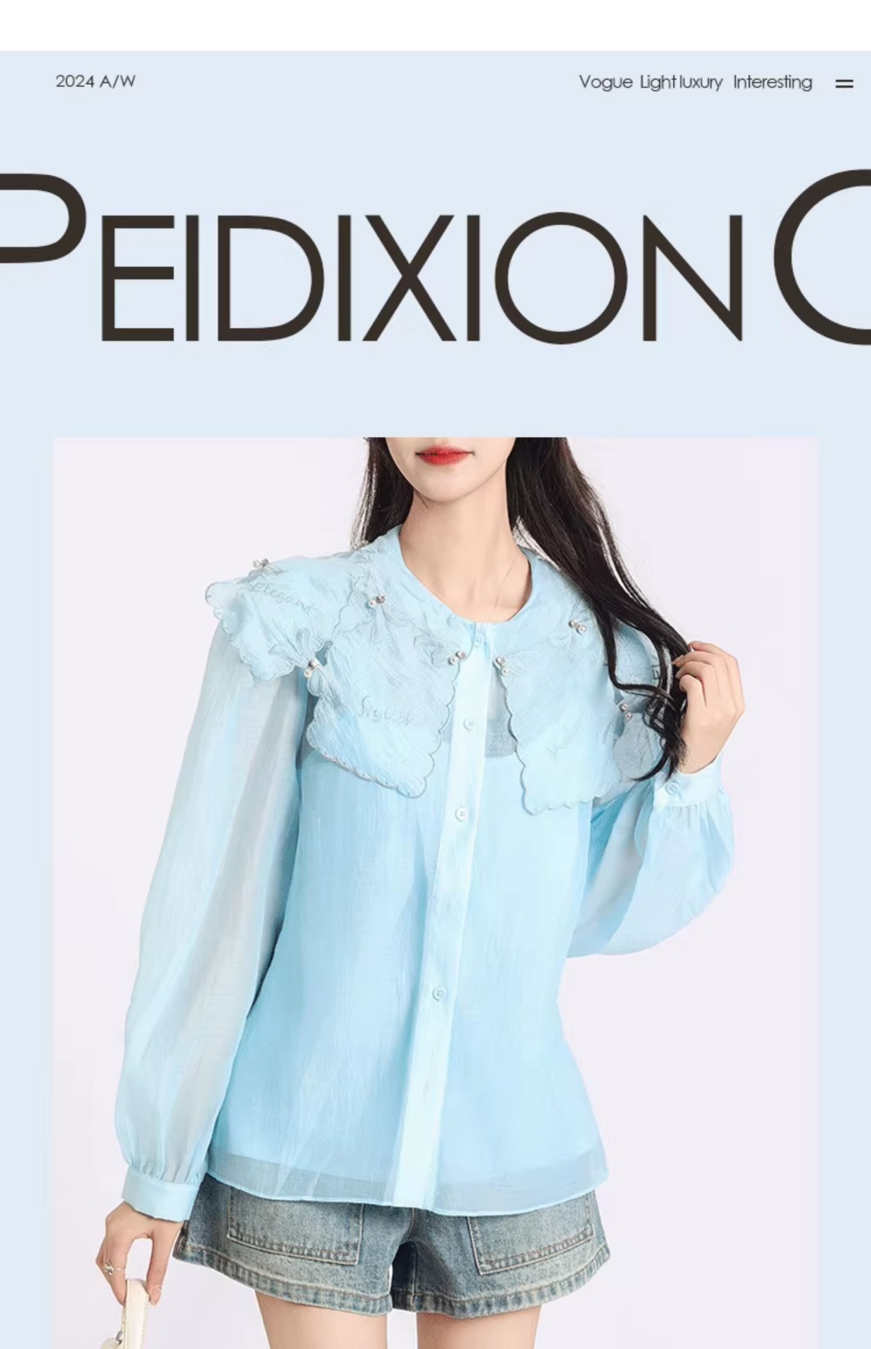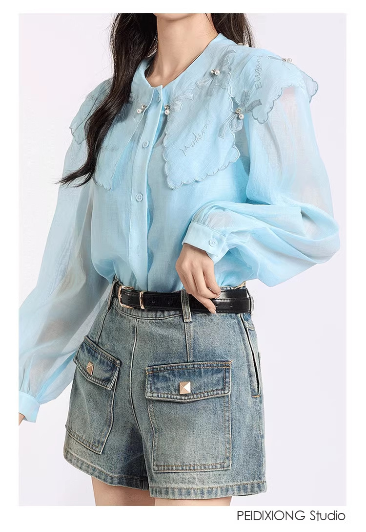 중공업 달콤한 구슬 2024 새로운 슬림 셔츠 탑 긴 소매 여성 투피스 세트스토어 가기