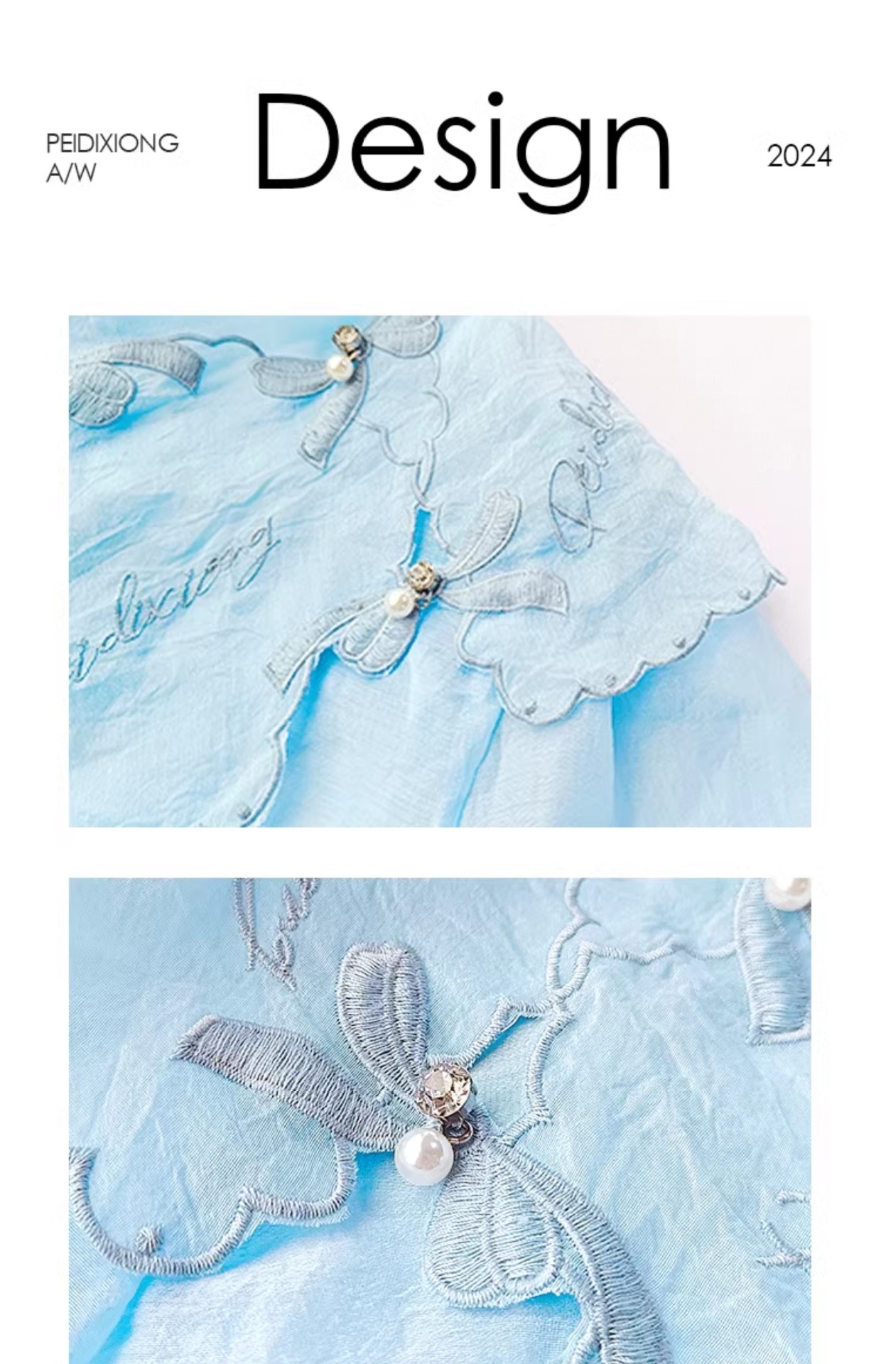 중공업 달콤한 구슬 2024 새로운 슬림 셔츠 탑 긴 소매 여성 투피스 세트