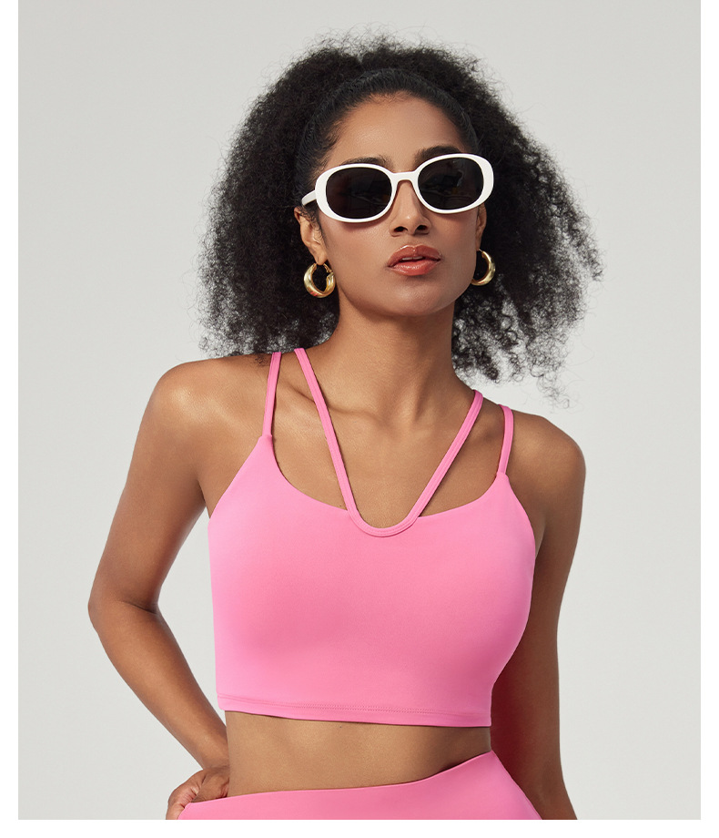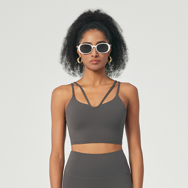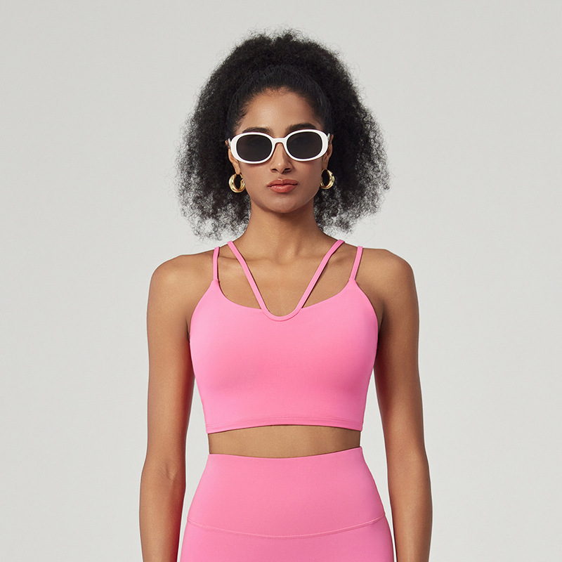 벌거 벗은 라이크라 스포츠 속옷 봄과 여름 얇은 벨트 아름다운 뒤로 달리기 피트니스 요가 조끼 벨트 가슴 패드 슬링 브래지어