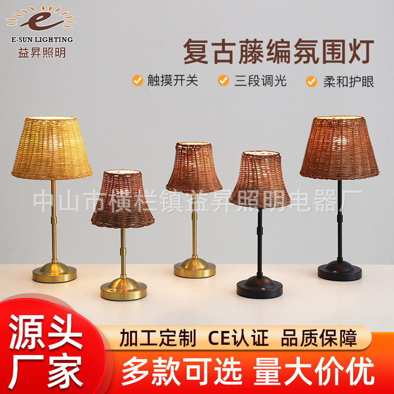 국경 간 충전 테이블 램프 led 데스크탑 램프 복고풍 등나무 나이트 라이트 침실 간단한 분위기 램프 장식 장식품스토어 가기