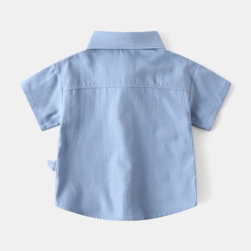 여름 어린이 의류 2025 새로운 어린이 짧은 소매 셔츠 소년의 공룡 모양 셔츠 아기 잘 생긴 여름 머리 세대
