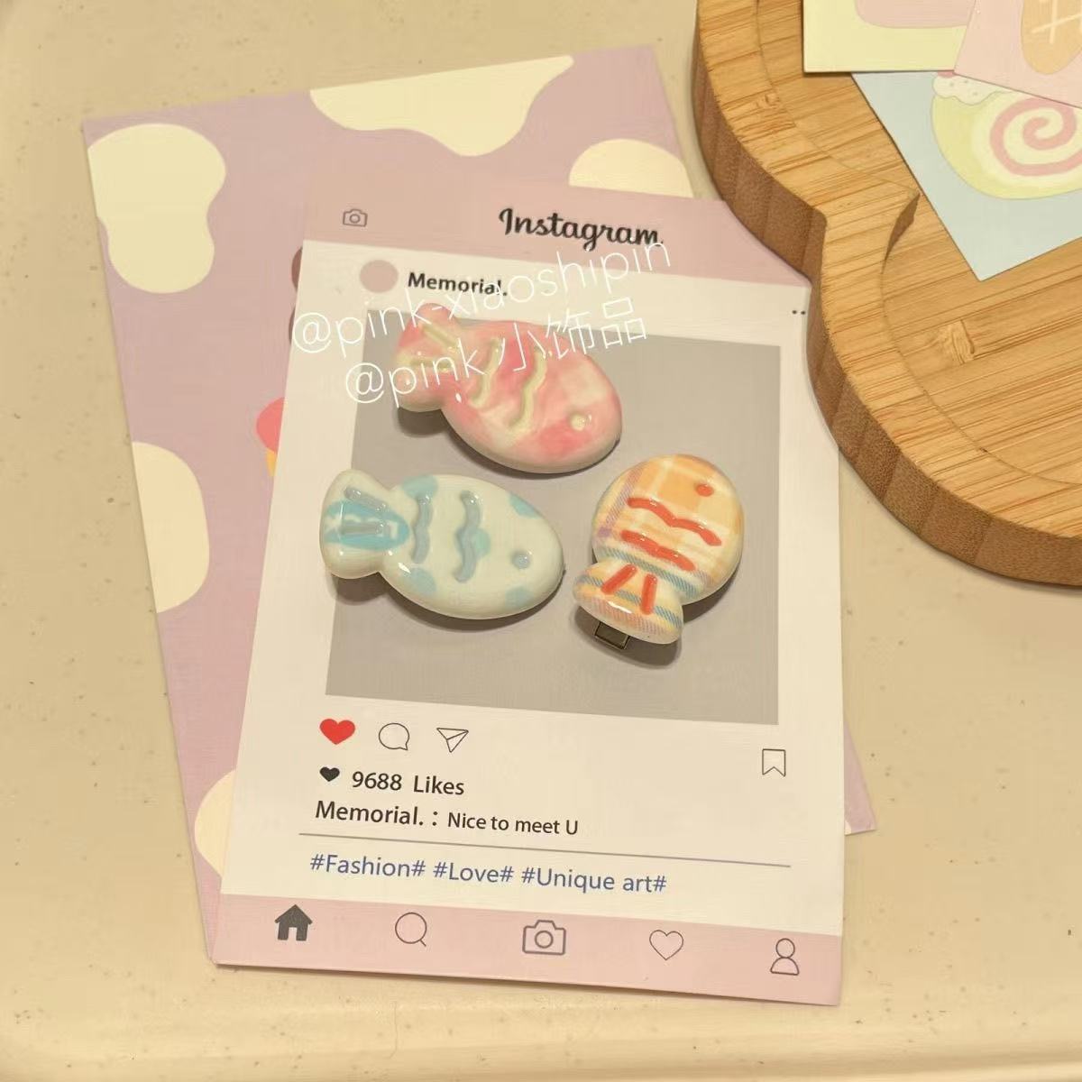 소녀의 크림 컬러 귀여운 물고기 머리핀 마카롱 Ins 스타일 작은 물고기 뱅이 만화 1 달러 소녀의 머리 장식