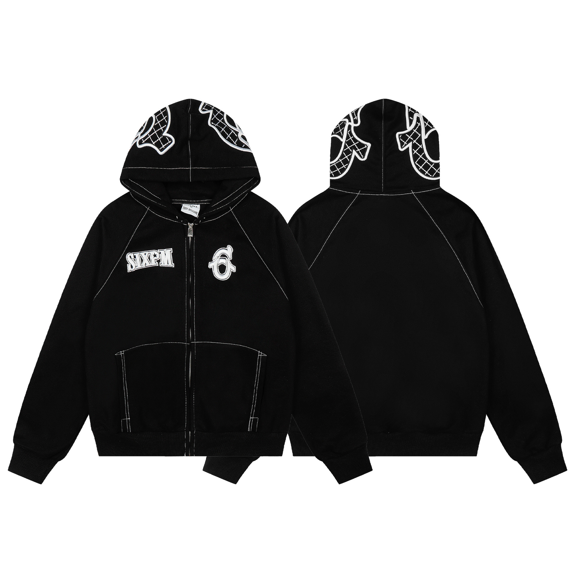 크로스보더 spm 신상 남녀 공용 캐주얼 보온 스웨트셔츠 및 스웨트팬츠 가을 겨울 자수 플리스 하이스트리트 세트 상의스토어 가기