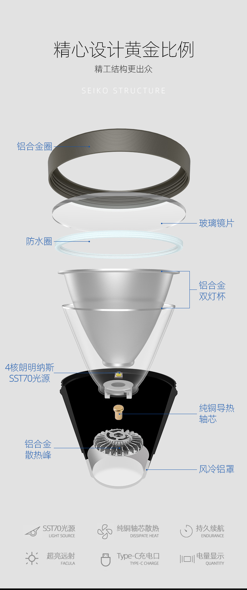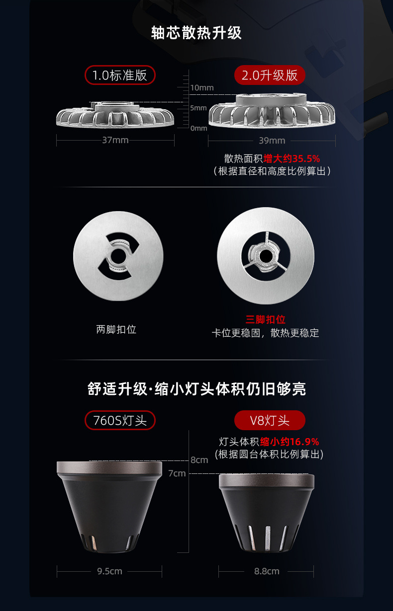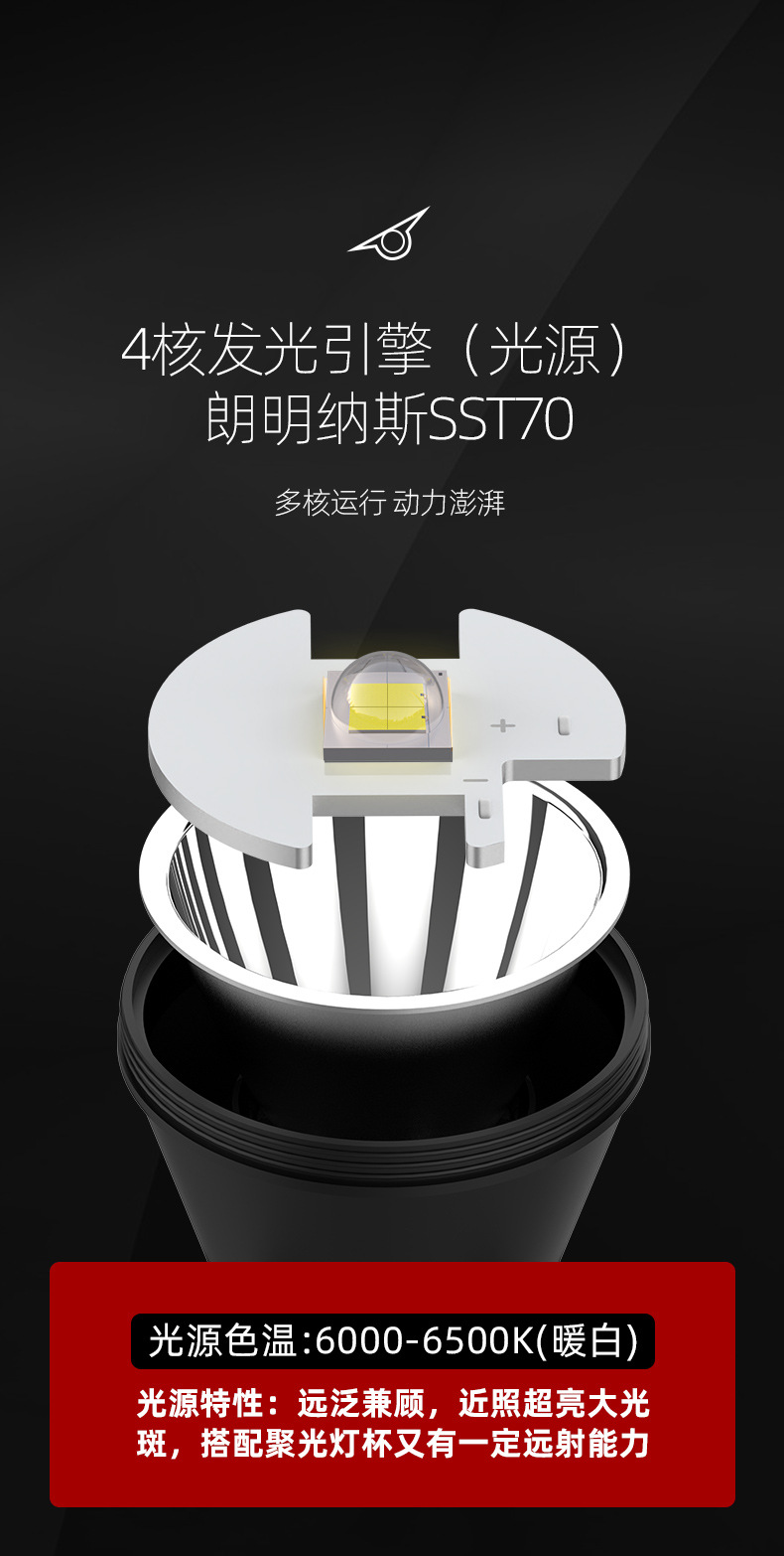 • V8 (백색광): 랑밍나스 SST70 광원, 쿼드 코어 초고휘도 대형 광점